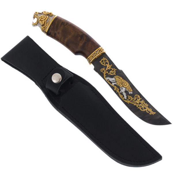 Нож охотничий "Отвага"Нож охотничий "Отвага"С давних времен производством оружия занимались лучшие мастера из Златоуста. Художественные клинки, кинжалы, стилеты, кортики, мечи, шашки и топорики выполнялись вручную из стали высокого качества в технике Златоустовской гравюры на металле. Наши оружейники прекрасно разбираются в технике гравировки, травления, серебрения и золочения.