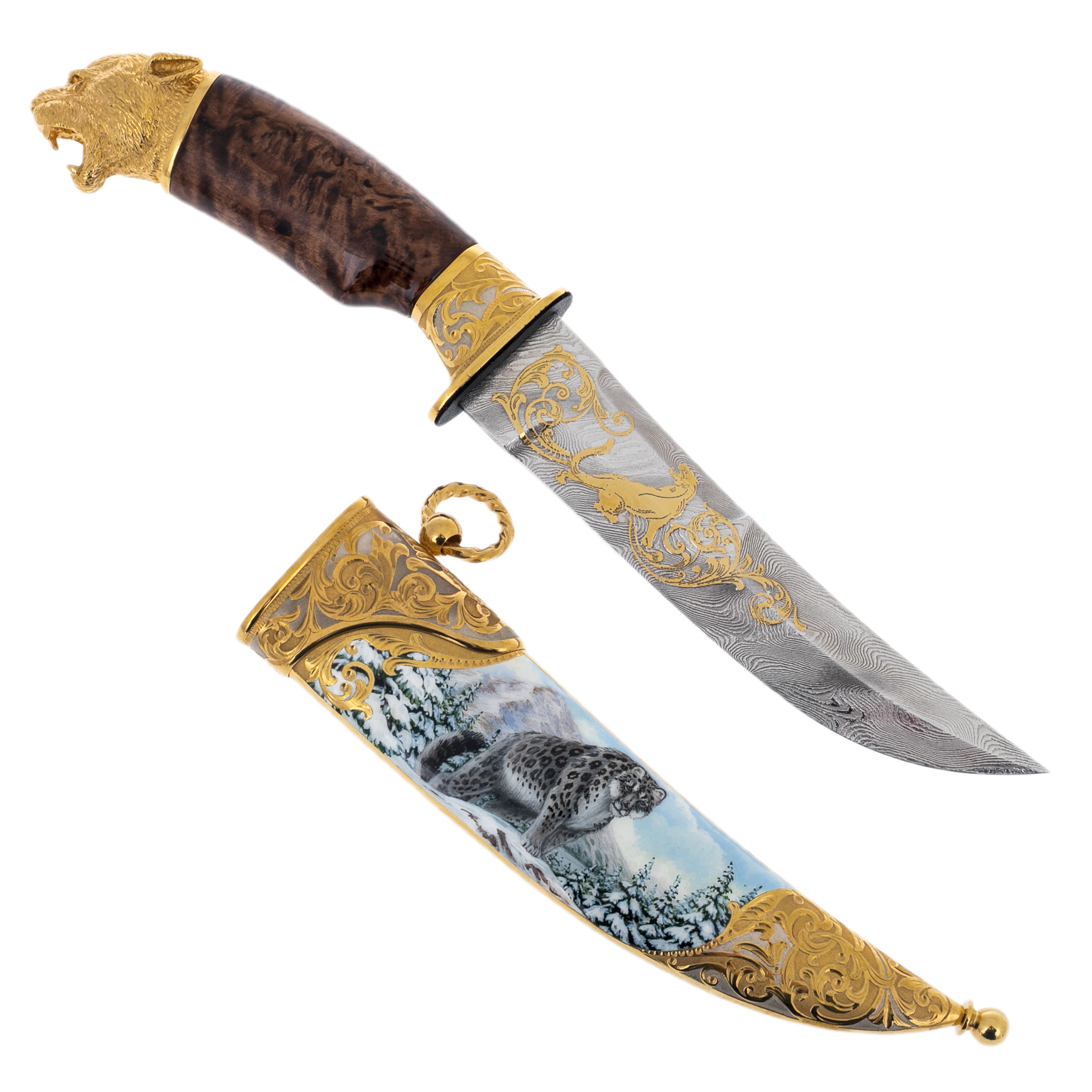 Нож сувенирный "Снежный барс" с дамасской сталью, Златоуст