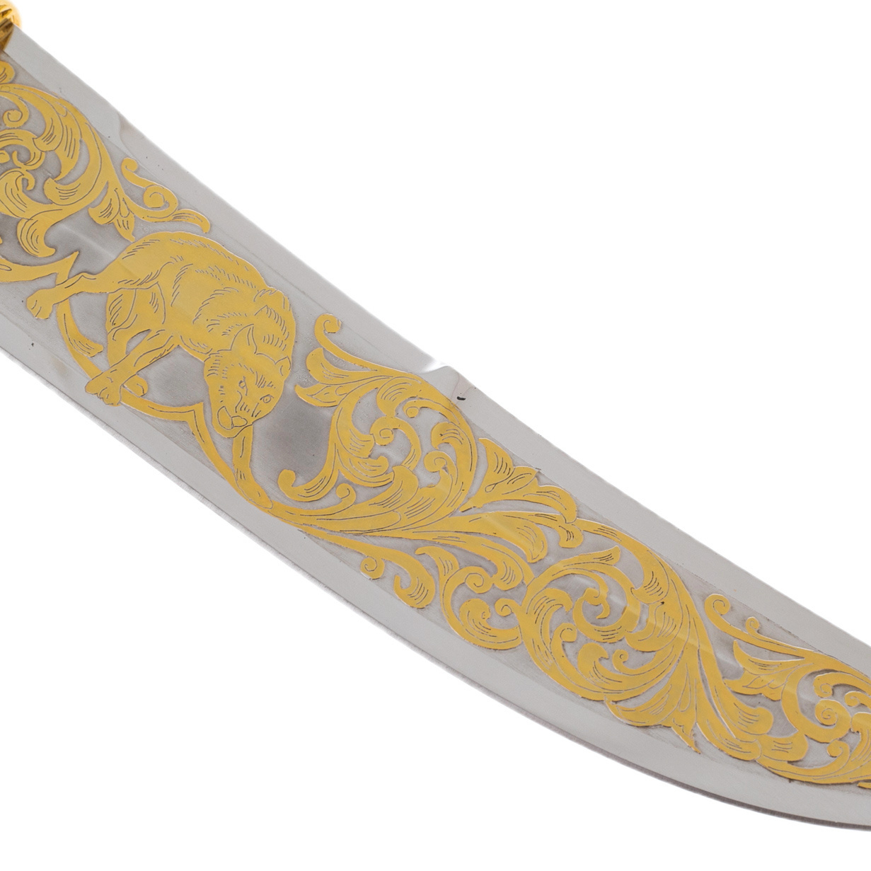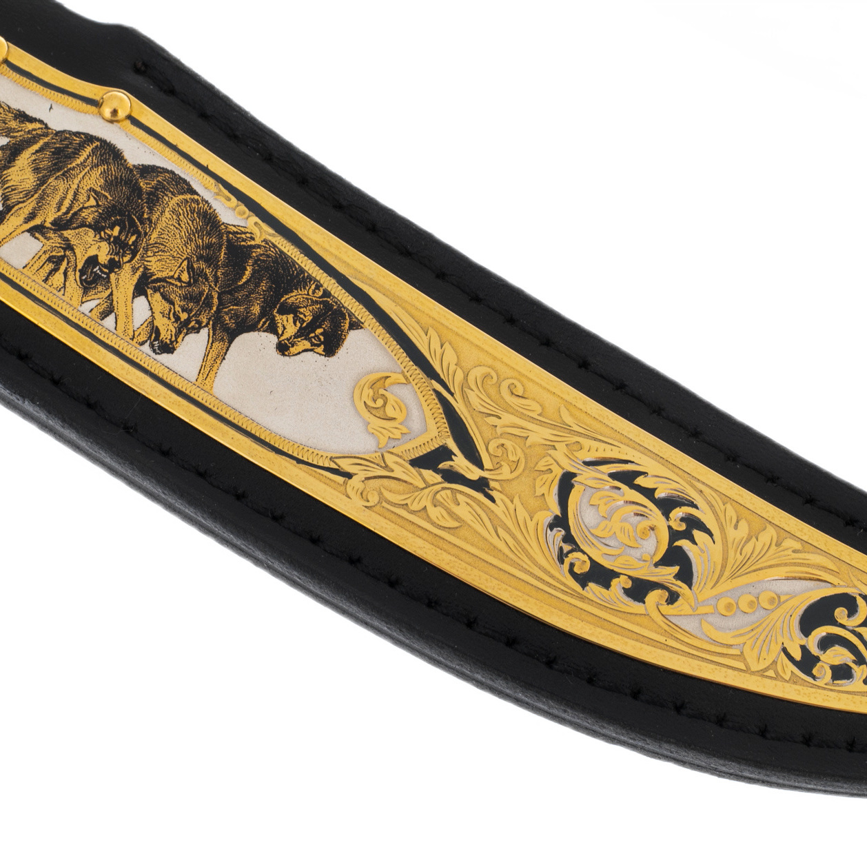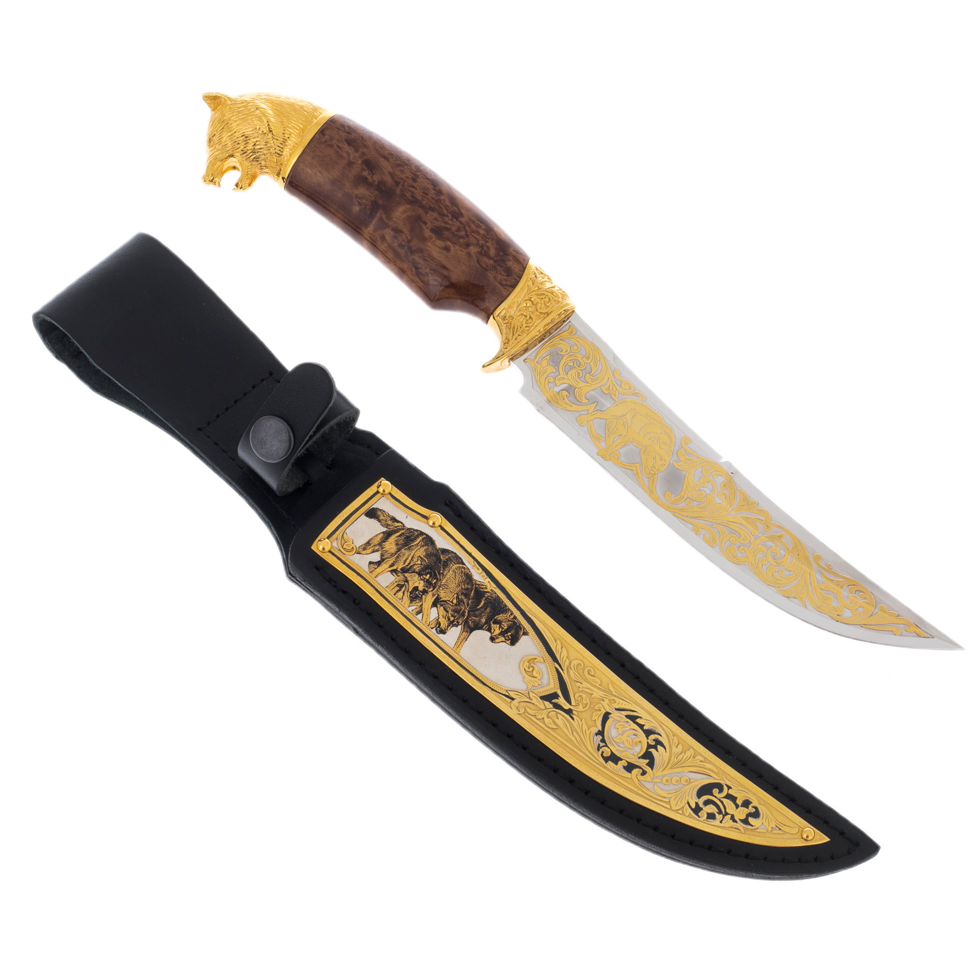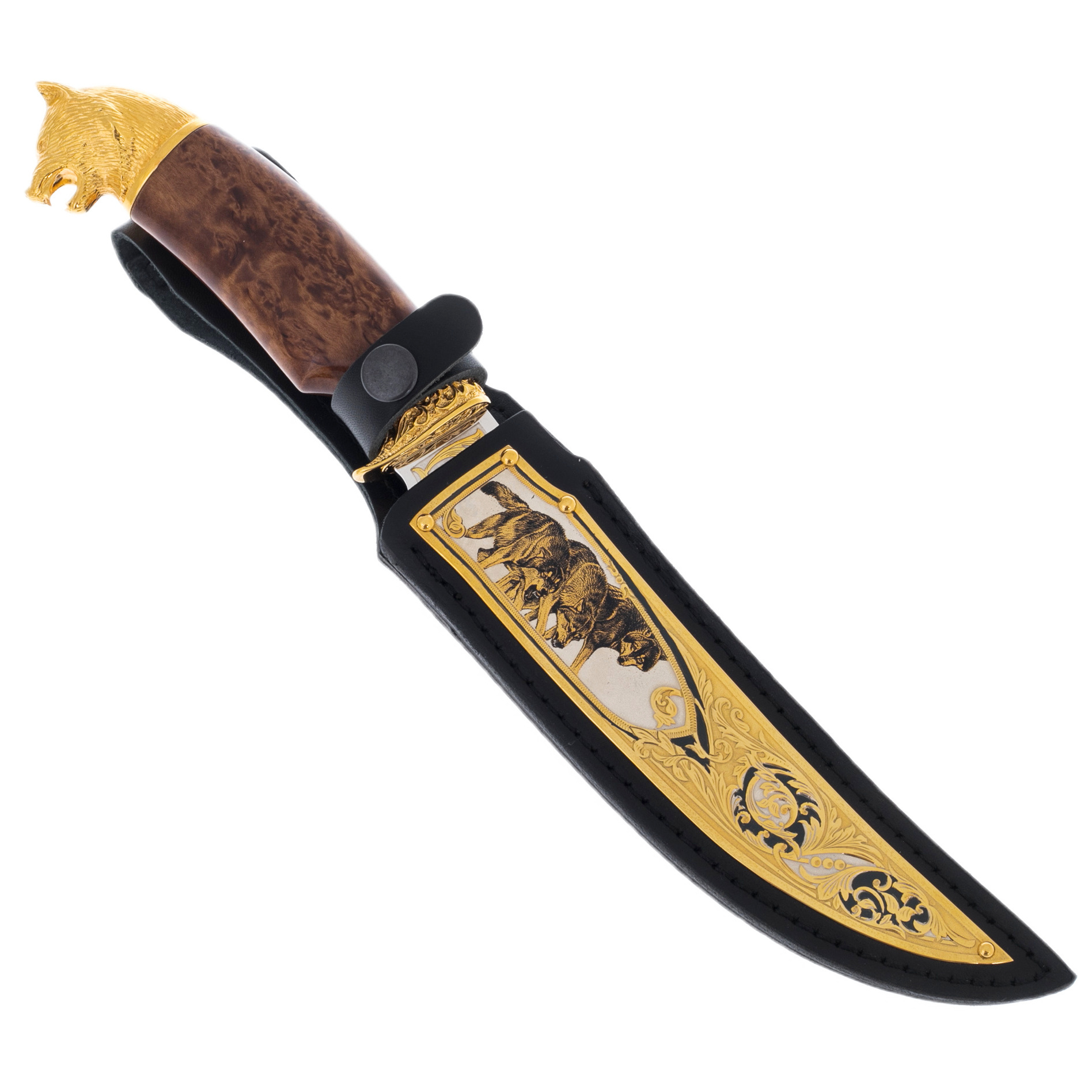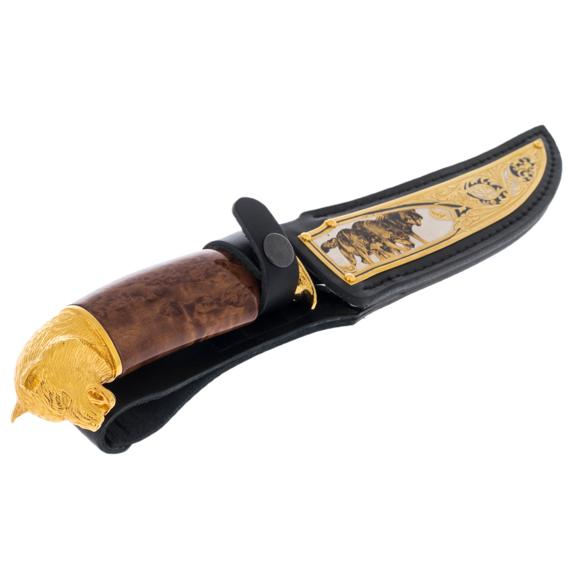 Материал рукояти:никель, латунь, золото, карельская береза.