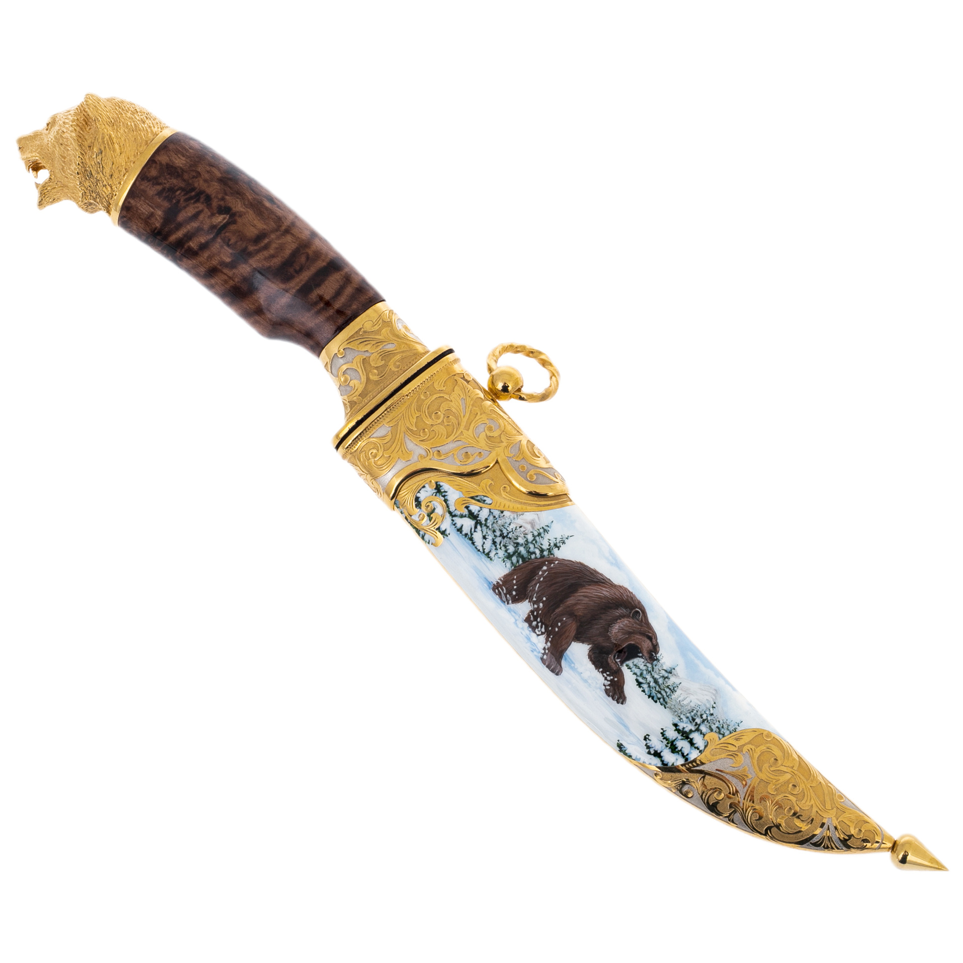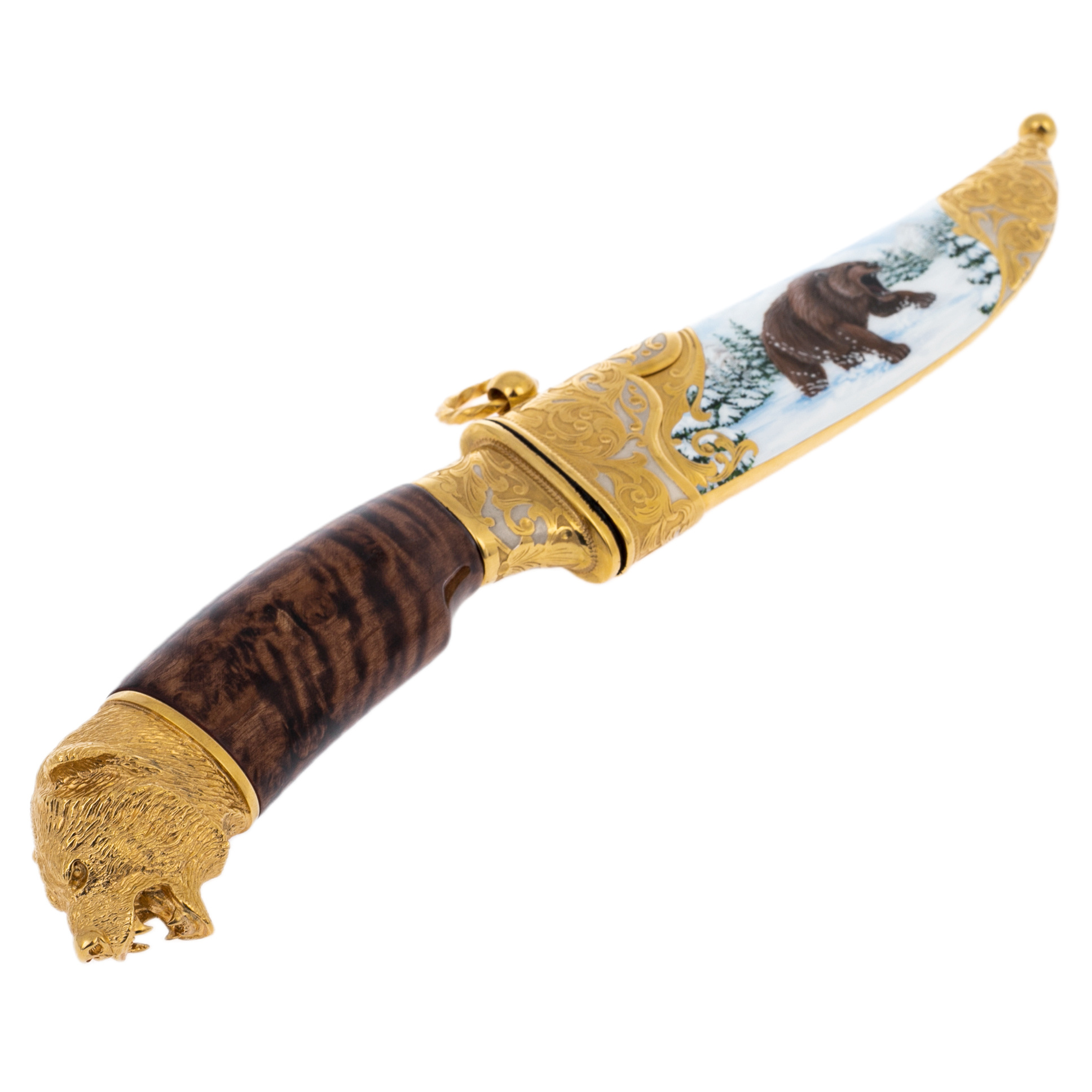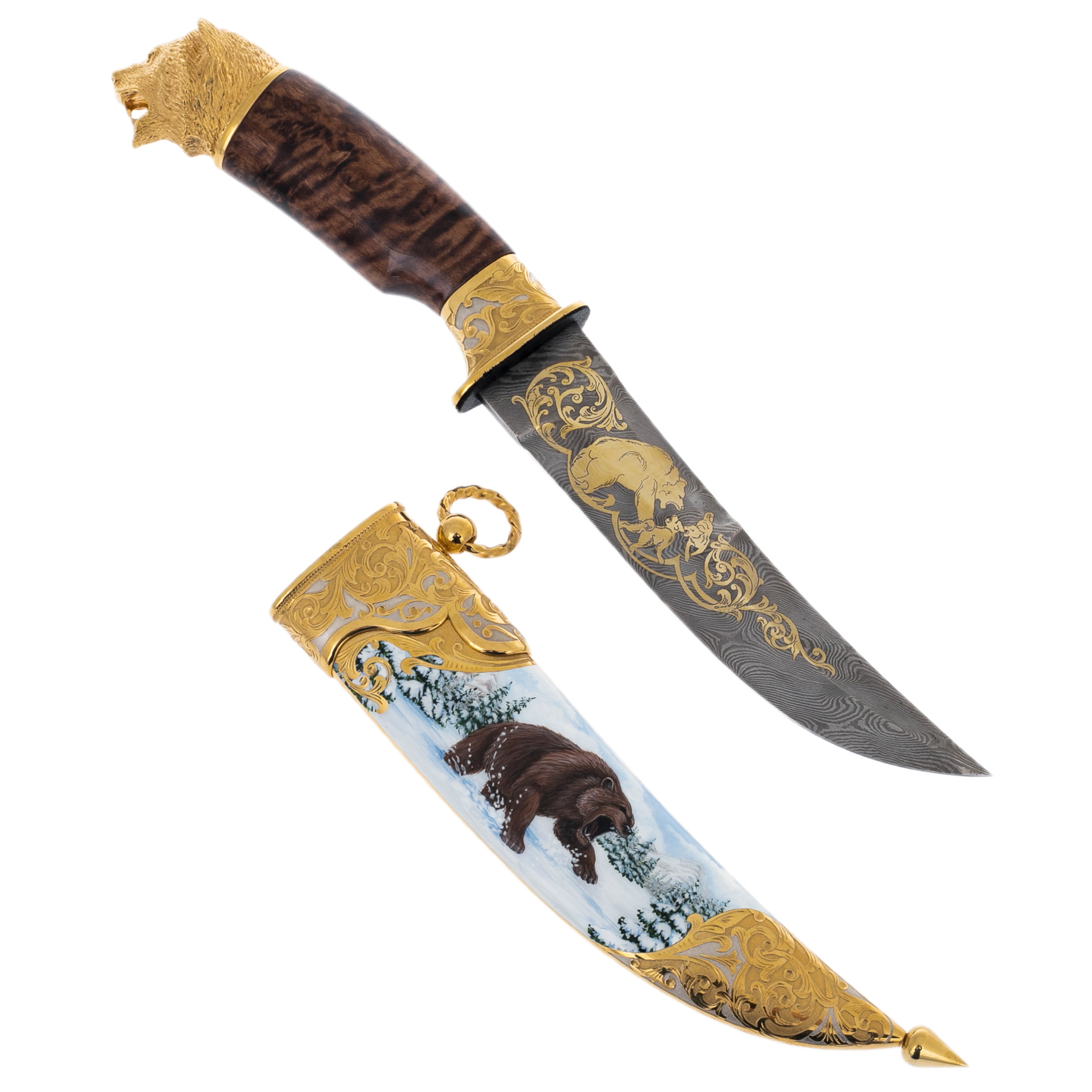 Нож сувенирный "Зимний медведь" с дамасской сталью, Златоуст