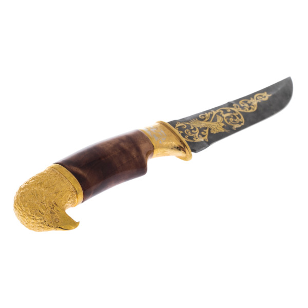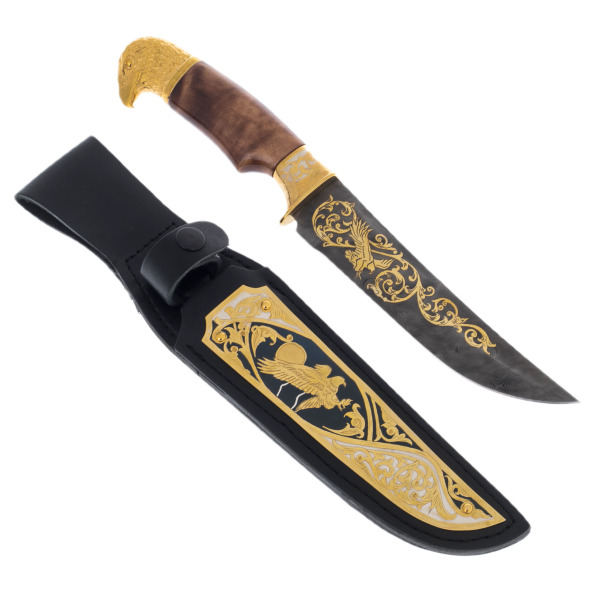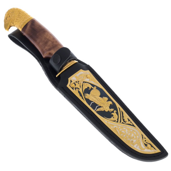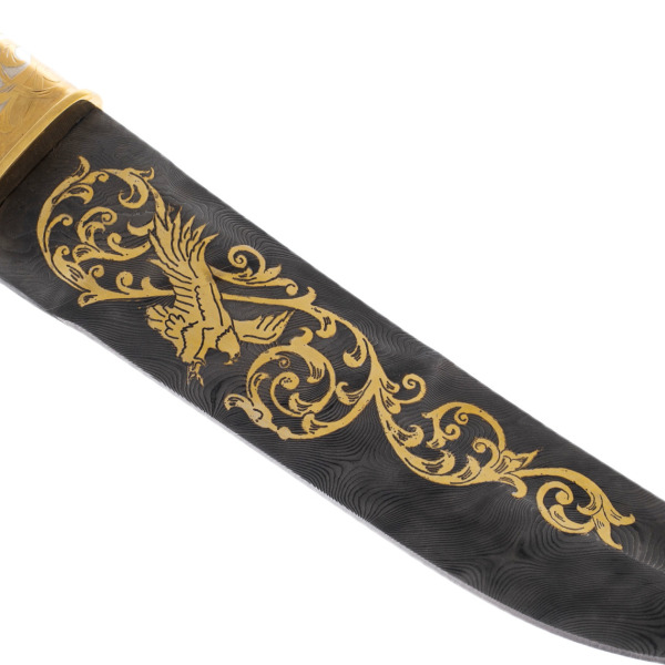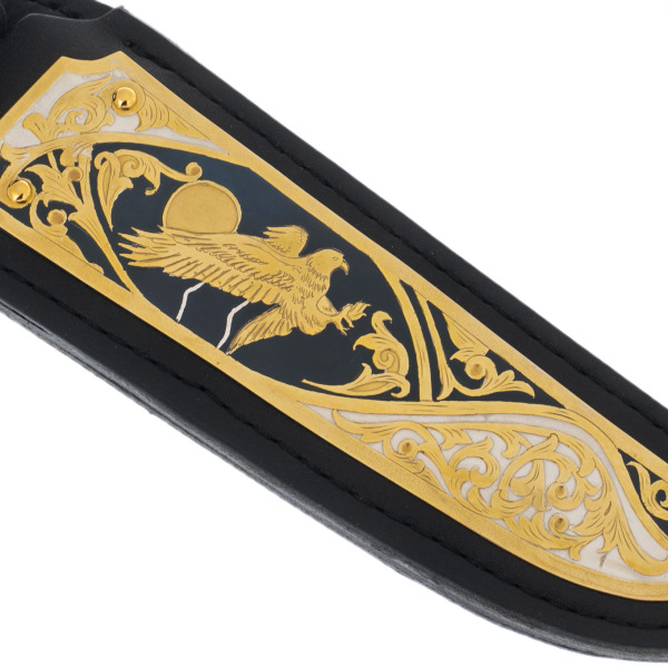 Детали исполнения поражают: каждый изгиб клинка, каждая линия гравировки олицетворяют мощь и хладнокровие. Образ орла здесь неслучаен — эта птица, будучи хозяином небес, символизирует свободу, власть и величие. Обладатель такого ножа демонстрирует свою готовность к решительным действиям, преодолевая любые преграды на пути к вершине.
