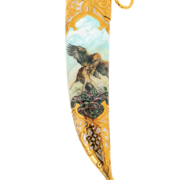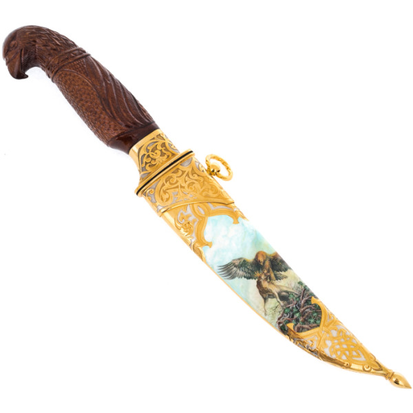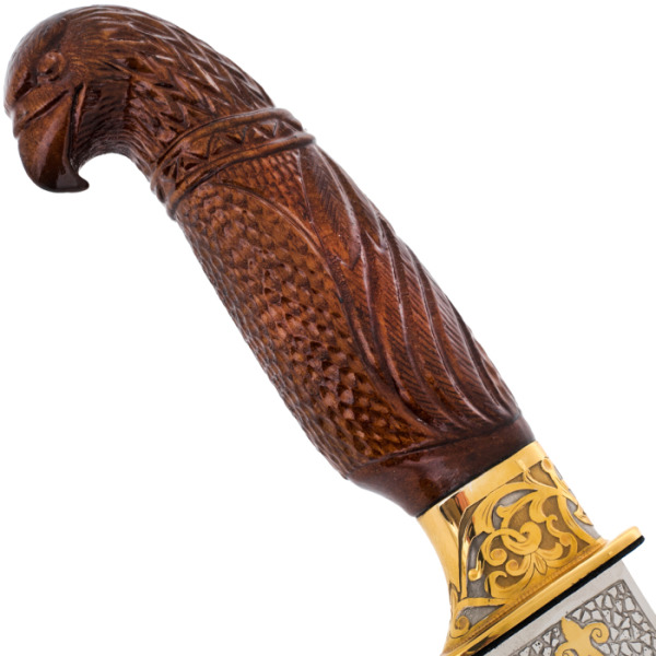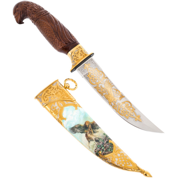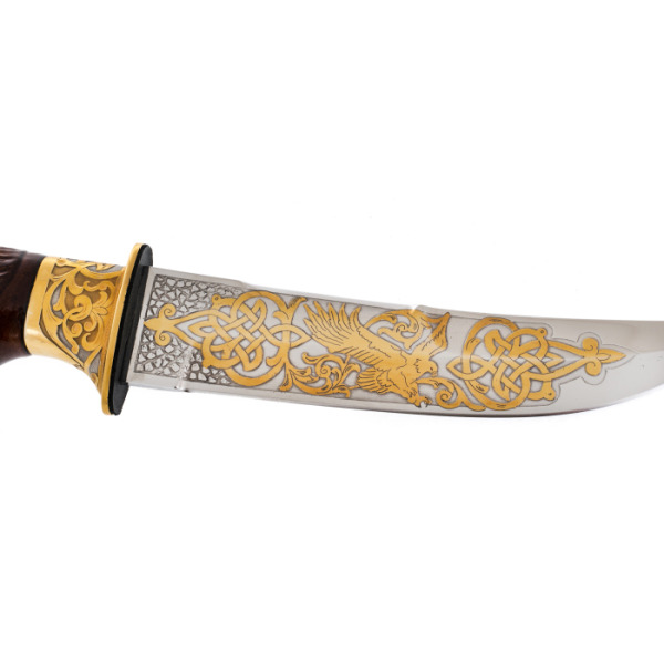 Нож "Сокол" ЗлатоустНож "Сокол" ЗлатоустС давних времен производством оружия занимались лучшие мастера из Златоуста. Художественные клинки, кинжалы, стилеты, кортики, мечи, шашки и топорики выполнялись вручную из стали высокого качества в технике Златоустовской гравюры на металле. Наши оружейники прекрасно разбираются в технике гравировки, травления, серебрения и золочения.
