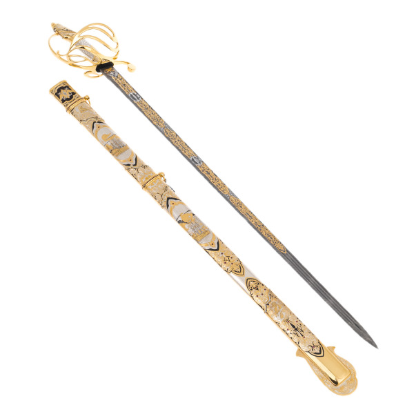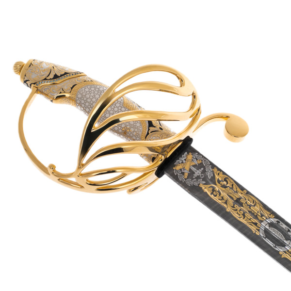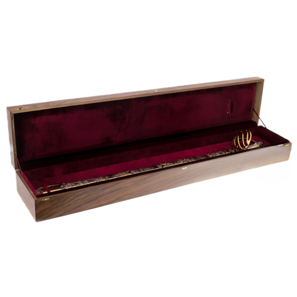 Этот палаш — не дань оружейной моде, а знак исключительного положения и вкуса владельца. Он уместен как представительский дар адмиралу, государственному деятелю или коллекционеру, способному прочесть в его декоре язык символов. В футляре из благородного дерева с бордовой бархатной подкладкой он воспринимается как дары древних морей, как мифический артефакт, наделённый исторической и художественной ценностью.