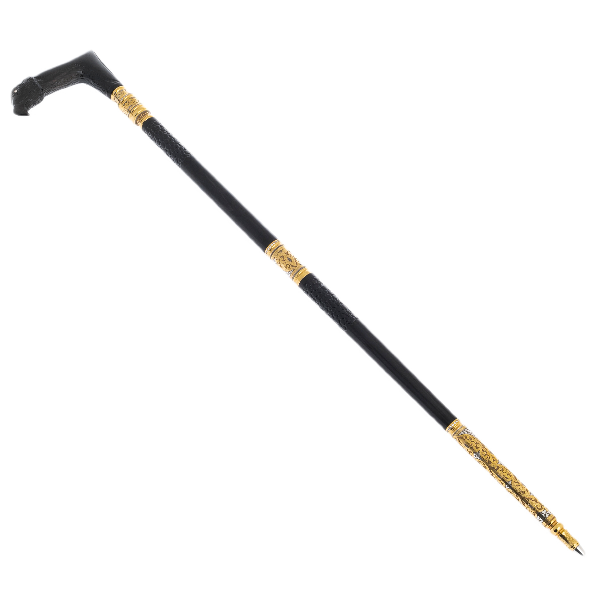 Черная тень проносится над вершинами гор, пронизывая пространство бесшумным полетом. Ее силуэт — символ власти, силы и свободы, неподвластной ни времени, ни обстоятельствам. Эта трость — воплощение именно этого духа. Каждая деталь, каждая линия, каждая тень на ее поверхности — олицетворение хищного величия.