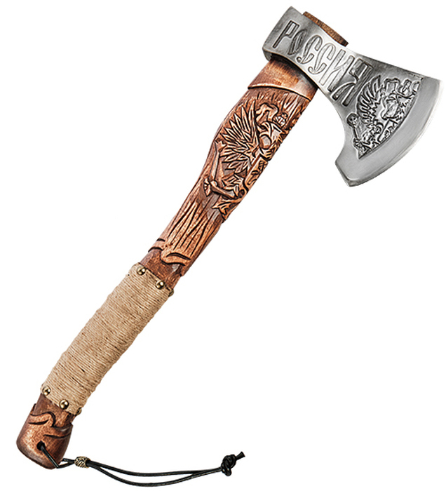 Топор "Россия" выполнен вручную из стали высокого качества на металле. Образец подарочного оружия - шедевр оружейного мастерства. Дорогое коллекционное оружие подчеркивает высокий статус его владельца.