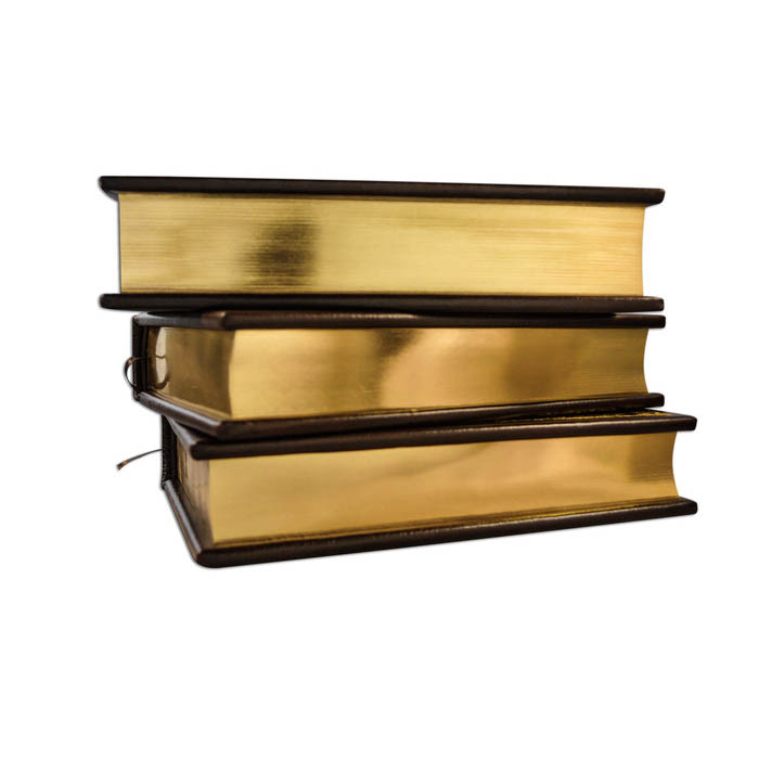Особенности оформления: французский цельнокожаный переплет ручной работы выполнен из натуральной кожи Perugia brown производства итальянской кожевенной фабрики Carisma. Обложка книги декорирована глубоким блинтовым и рельефным золотым тиснением (использована фольга Luxor 240). Обрез книги вручную полирован и позолочен сусальным золотом. .