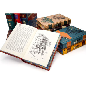 Исполнение:художественный стиль кожаного переплета, множество цветовых вариантов оформления с акцентом на едином стиле дизайна. Ручная работа и лучшие материалы в оформлении, все обрезы блоков страниц украшены тематическими рисунками. Книги отпечатаны на дизайнерской бумаге, разработанной для комфортного чтения.