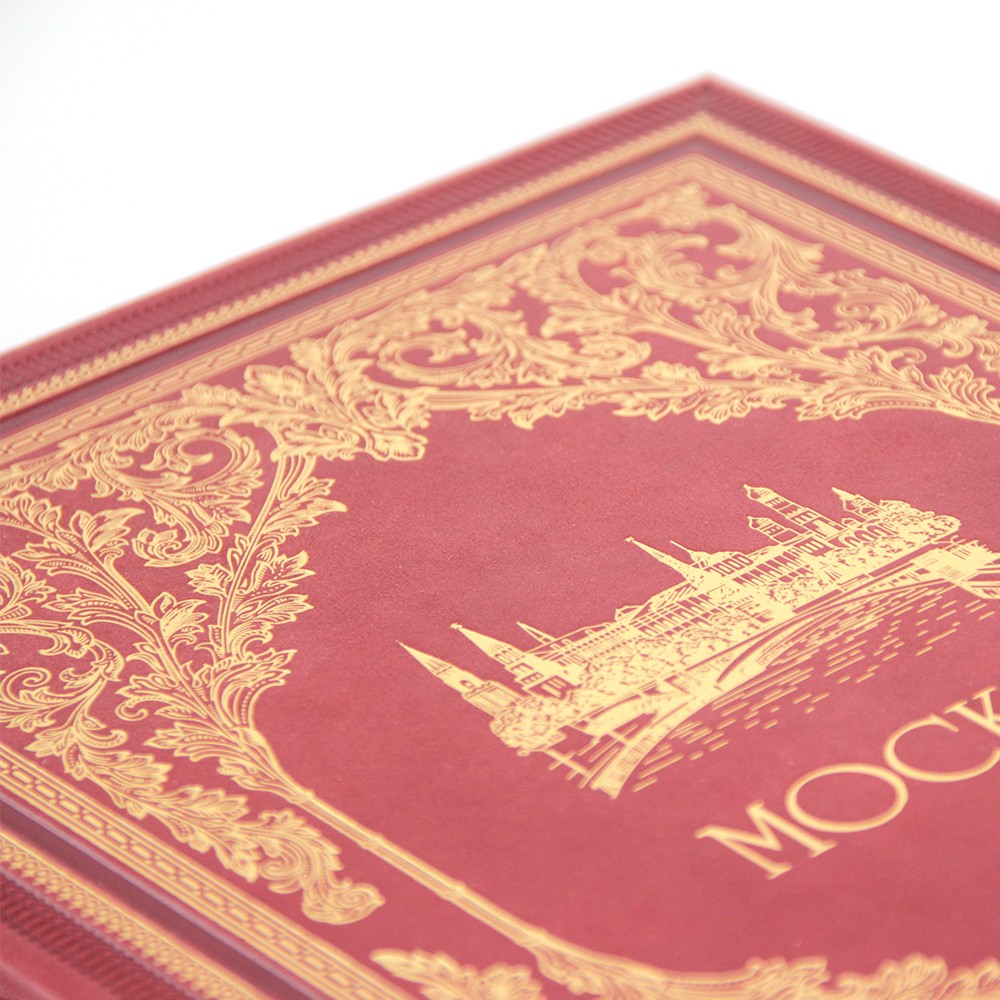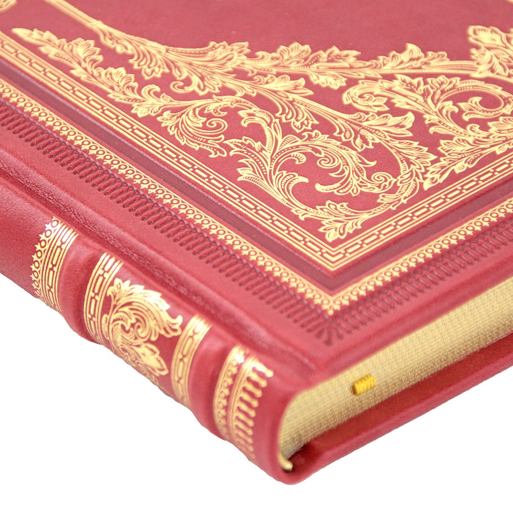 Исполнение: Переплёт ручной работы из натуральной кожи, форзац из дизайнерской бумаги, 4 бинта на корешке, ручной обработки, обрез блока торшонированный золотой, каптал золотой из натуральной кожи, тиснение блинтовое и золотой фольгой, ляссе.