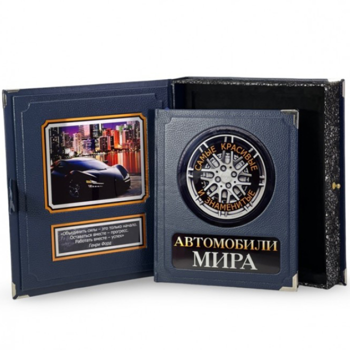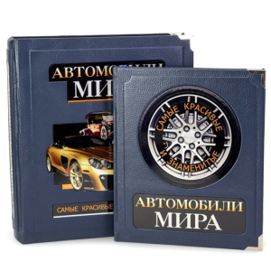 Книга в кожаном переплете "Автомобили мира. Самые красивые и знаменитые" в коробе