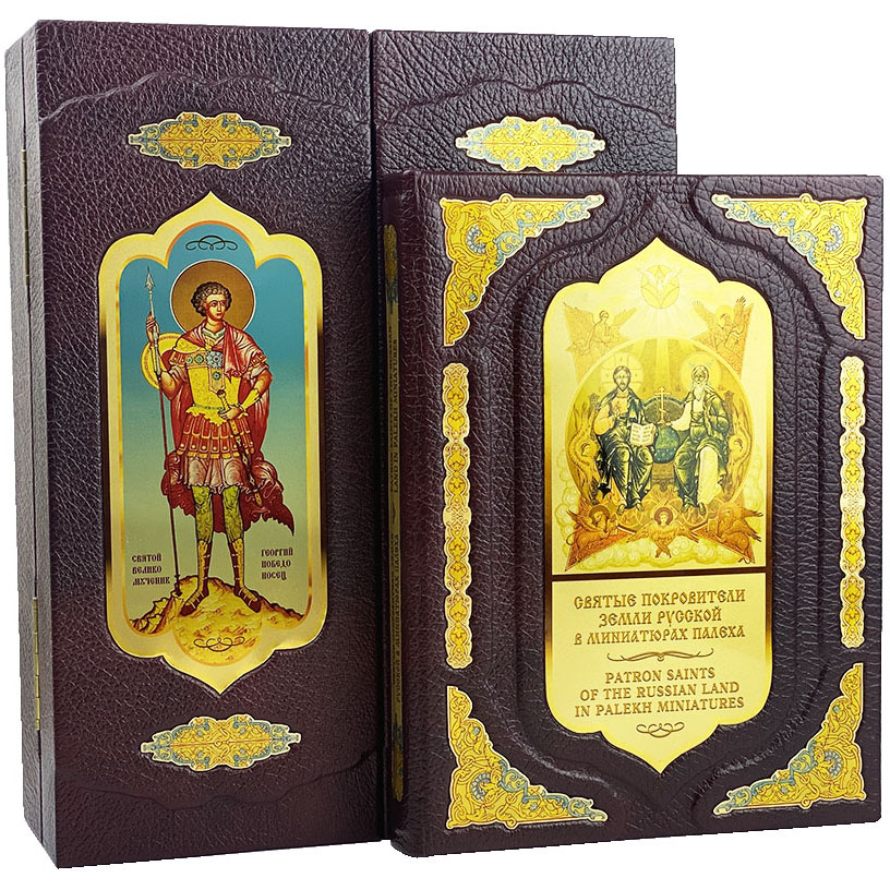 Книга в кожаном переплете "Святые покровители Земли Русской, в миниатюрах Палеха" в коробе-складне