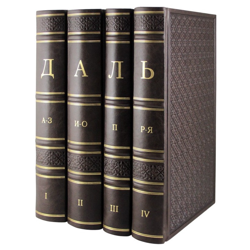 Книга в кожаном переплете "Толковый словарь живого великорусского языка. 4 тома" В. И. Даль.