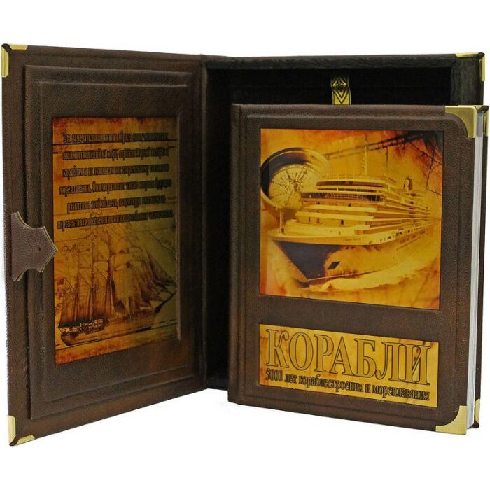 Книга в кожаном переплете "Корабли. 5000 лет морских приключений" в коробе