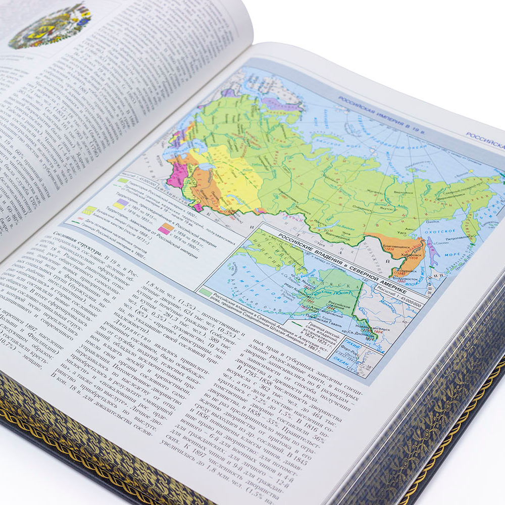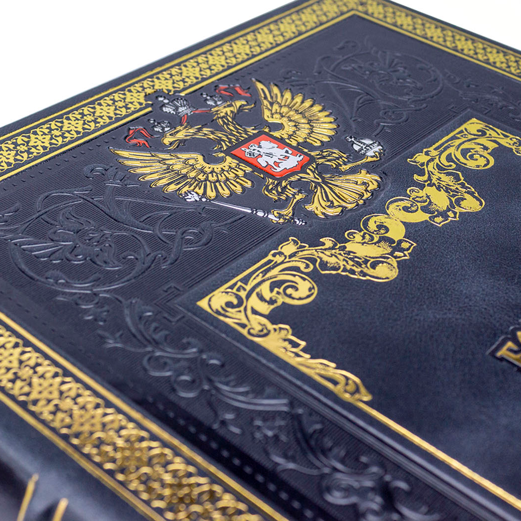 Оформление: Исторический французский стиль переплета, специально разработанный дизайн тиснения для данного собрания книг. Книжные блоки вручную отшлифованы, тонированы с нанесением золотого узора, что делают книгу не только привлекательной, но улучшают сохранность страниц.