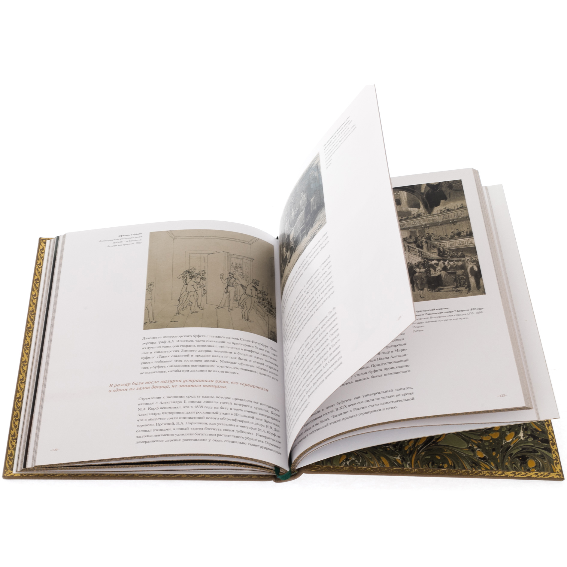 Исполнение:книга переплетена вручную, по старинной европейской технологии, на шнуры («французский переплёт»). Натуральная шагреневая кожа (дорогой сорт переплётной кожи, пр-во Франция), инкрустация обложки и корешка кожей другого цвета. Многоцветное, художественное тиснение, в т. ч. ручное. Дублюра (форзац) оформлена мраморной бумагой ручного крашения и окатана вручную золотистым бордюрным орнаментом. Обрезы торшонированы и окрашены вручную. Ручная работа.