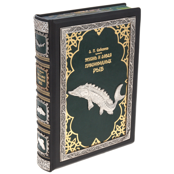 Подарочная книга "Жизнь и ловля пресноводных рыб" с накладками