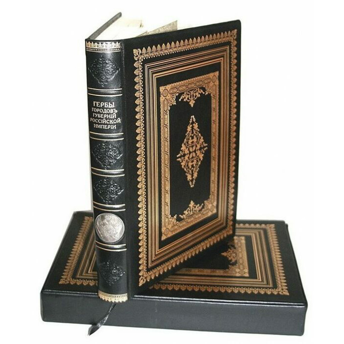 Подарочная книга в кожаном переплете "Гербы городов, губерний, областей и посадов Российской империи"