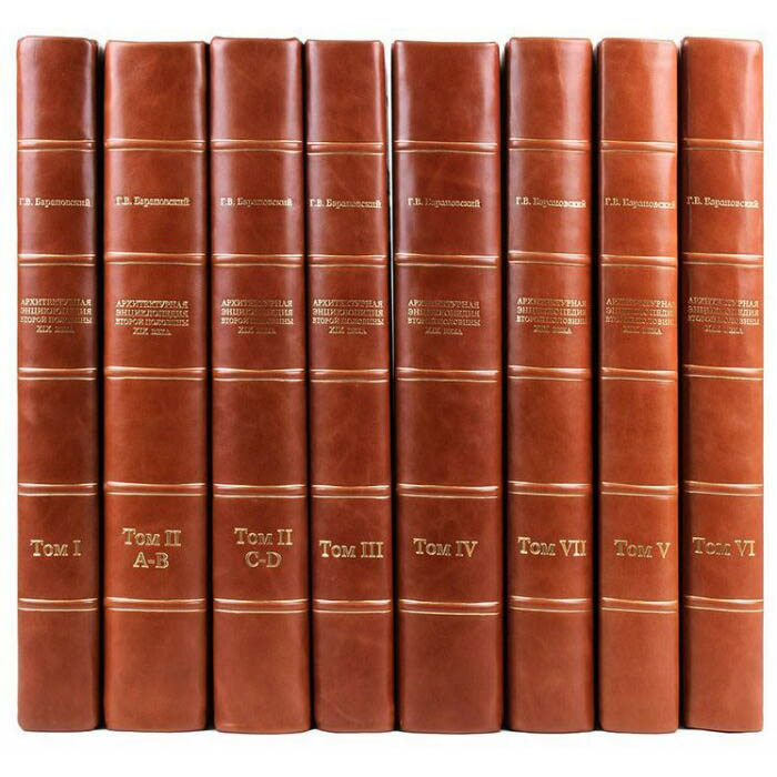 Книги в кожаном переплёте "Архитектурная энциклопедия второй половины XIX век" в 7 томах
