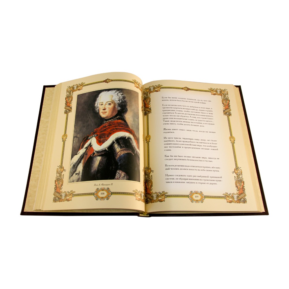 Исполнение: Переплёт ручной работы из натуральной кожи. Форзац из дизайнерской бумаги. 4 бинта на корешке, ручной обработки. Каптал золотой из натуральной кожи. Обрез блока торшонированный золотой. Тиснение блинтовое и золотой фольгой. Ляссе.
