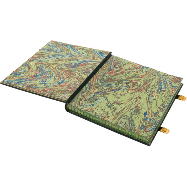 Переплет: Ручная работа, кожаный, с художественными вставками. Это подразумевает высокое качество материалов и уникальный дизайн.