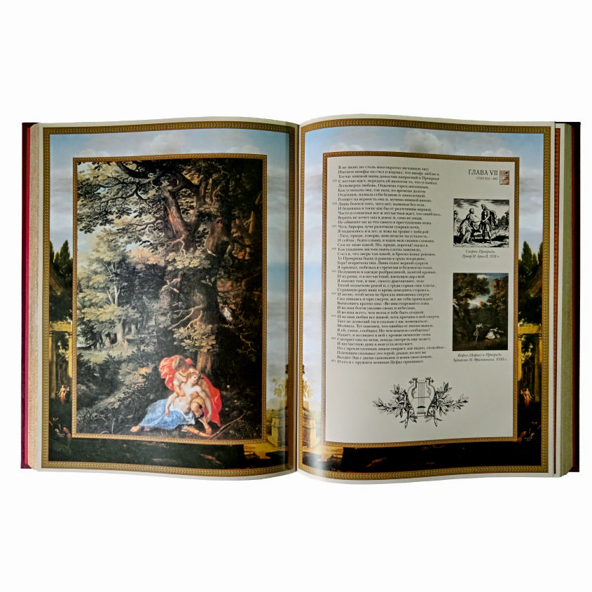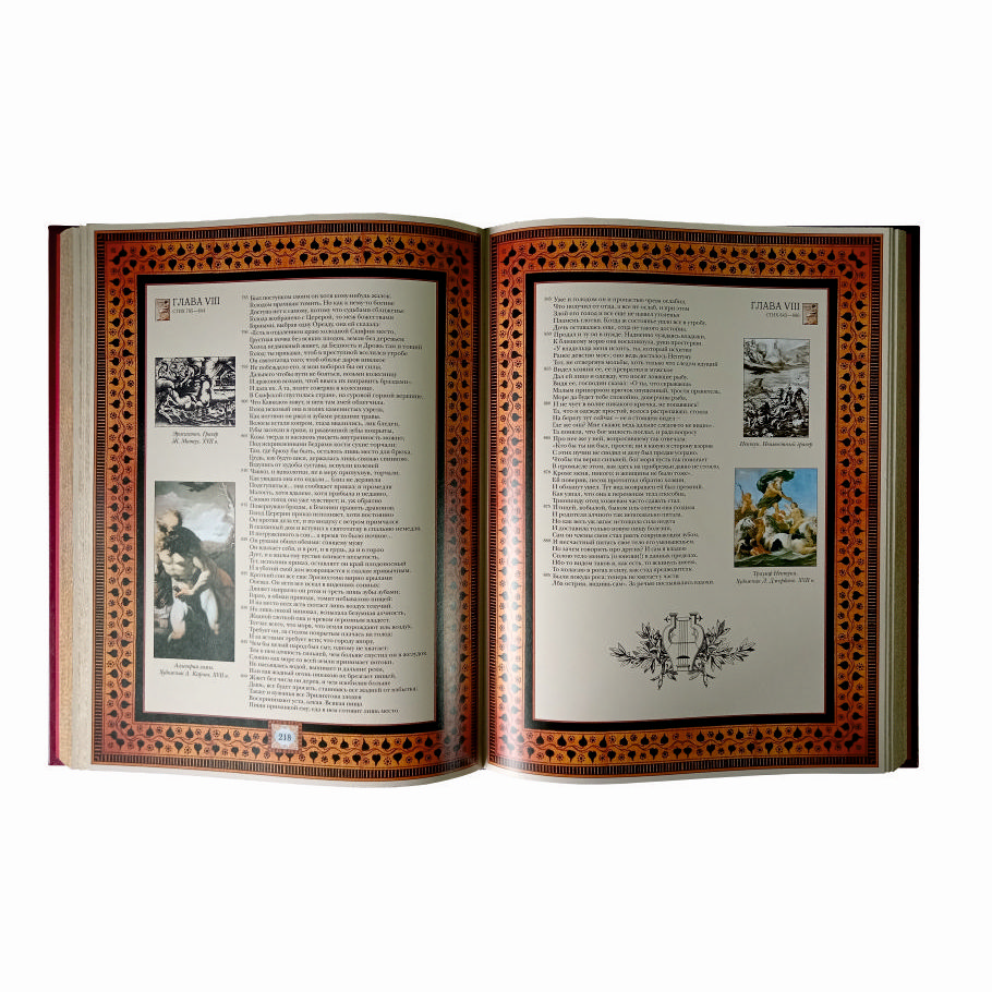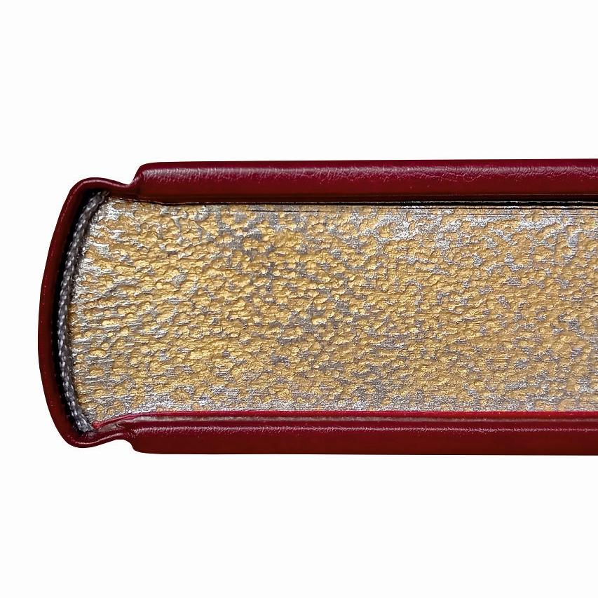 Особенности оформления: Переплет ручной работы, натуральная переплетная кожа. Каптал из шелковых нитей. Ляссе шелковое. Обрез торшонированный золотой фольгой. Украшение переплета: тиснение полиграфической фольгой, полиграфические вставки.