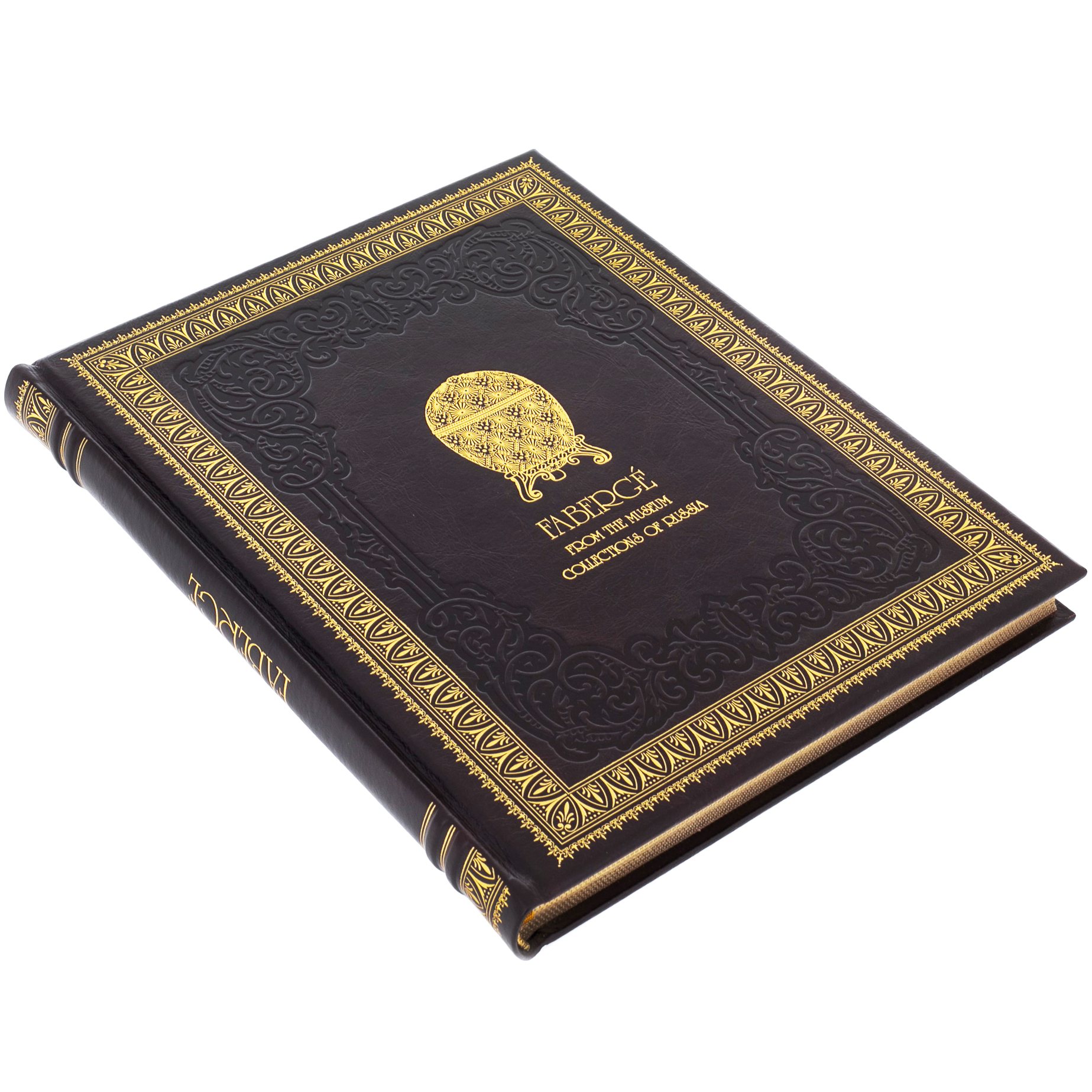 Книга в кожаном переплете "Фаберже. Из собраний музеев России" на английском языке