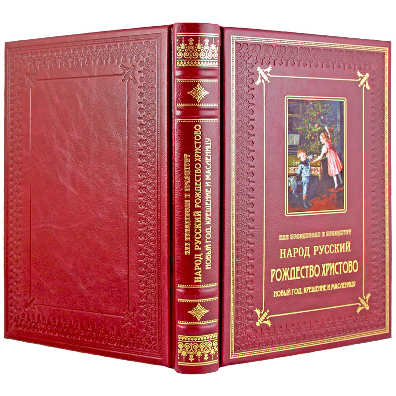 Книга в кожаном переплете "Как праздновал и празднует народ русский Рождество Христово, Новый год, Крещение и Масленицу."