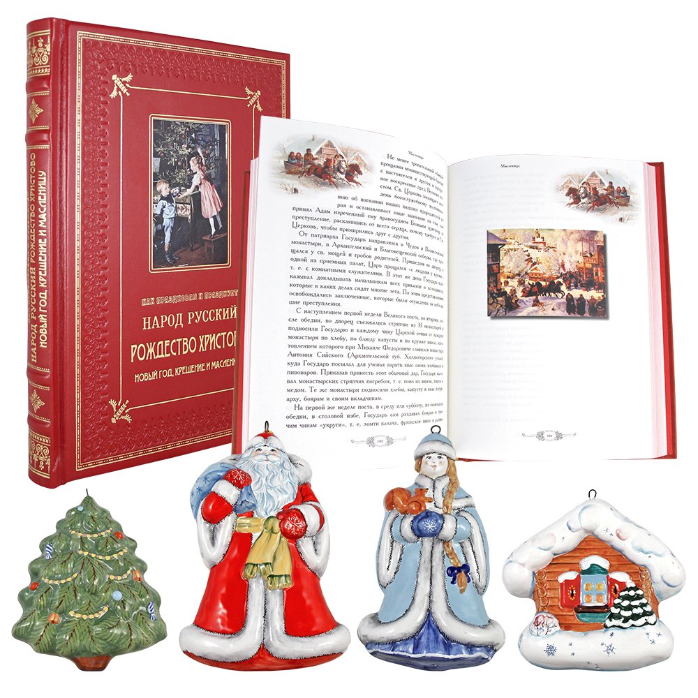 Подарочный набор с книгой и новогодними игрушками "Как праздновал и празднует народ русский Рождество Христово, Новый Год, Крещение и Масленицу"