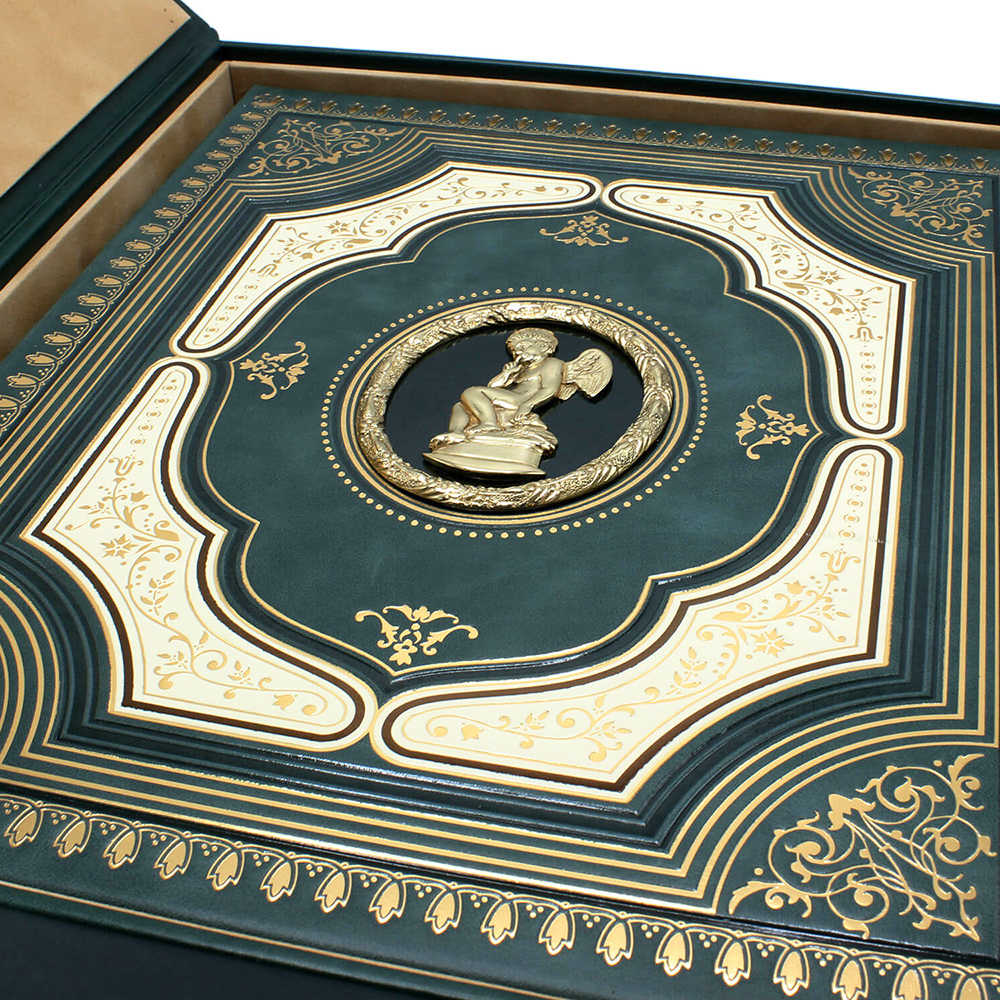 Особенности:французский стиль переплета, ювелирное литье. Блок страниц тонирован с нанесением узора. Полностью ручная работа наших мастеров.