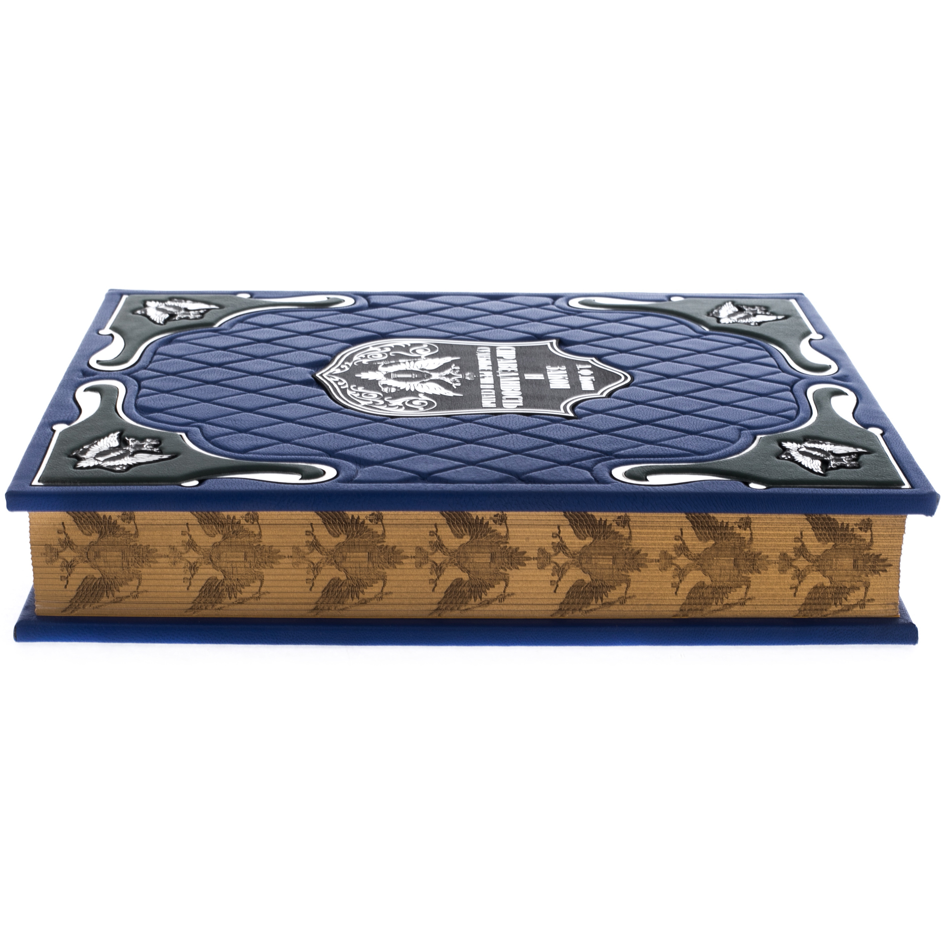 Особенности оформления:цельнокожаный переплет ручной работы; дизайн прекрасно сочетает в себе золотое и блинтовое тиснение, крашенный в тон переплетного материала обрез; офсетная бумага.