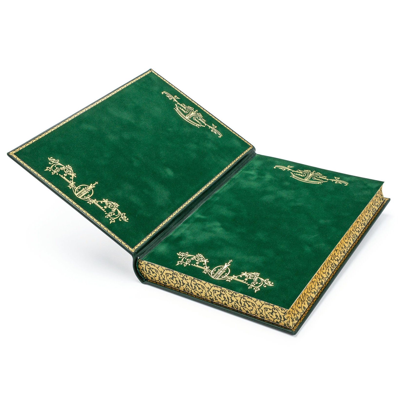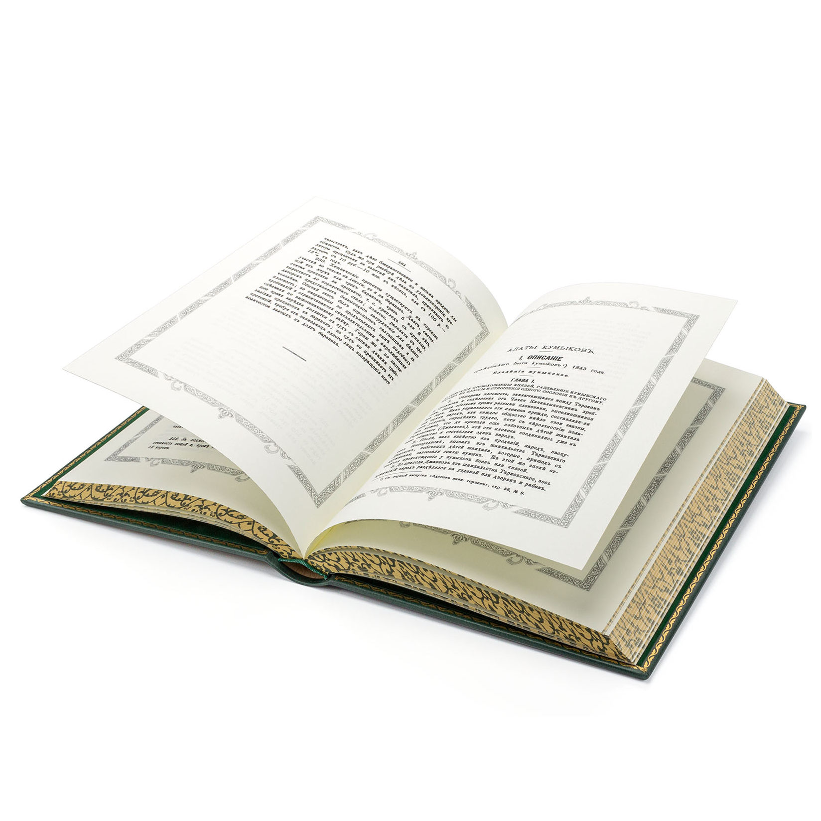 Оформление: Исторический французский стиль переплета, полностью ручная работа. Блоки страниц сшиты вручную и отшлифованы, тонированы с нанесением орнамента. Тиснение объемное и золотом.