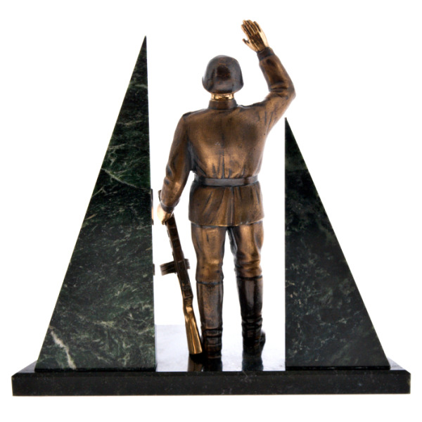 Сувенир «День Победы» выполнен в виде статуэтки солдата Великой Отечественной войны, отражая образ защитника Родины. Тщательная проработка деталей и высококачественные материалы подчёркивают значимость и уважение к памяти о героях войны.