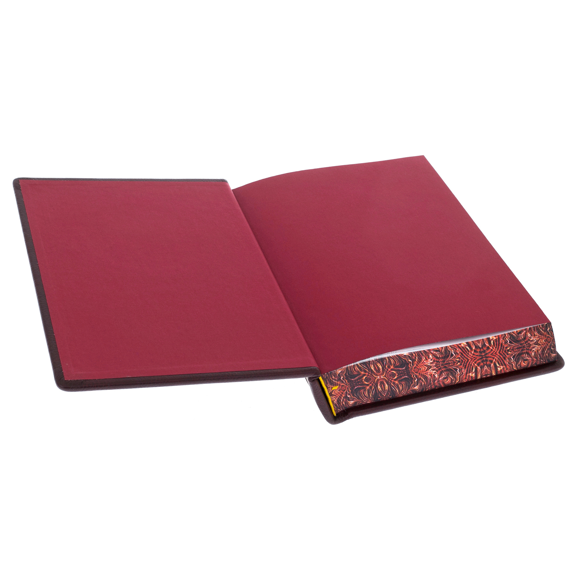 Особенности оформления: цельнокожаный переплет ручной работы; дизайн прекрасно сочетает в себе различное тиснение, крашенный обрез и латунную вставку; офсетная бумага, ляссе.
