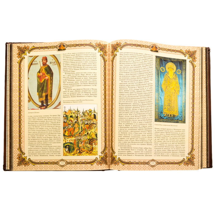 Книга в кожаном переплете "Русская история в жизнеописаниях ее главнейших деятелей"Книга в кожаном переплете "Русская история в жизнеописаниях ее главнейших деятелей""История России в жизнеописаниях ее главнейших деятелей" - классический труд одного из основоположников русской исторической мысли Н.И.Костомарова. Неординарный для традиционной науки XIX века отбор сюжетов, своеобразная политическая концепция сделали "Историю" значительным общественным событием своего времени. Благодаря выдающемуся литературному таланту и стремлению быть исключительно внимательным к характерным деталям эпохи знаменитому историку, этнографу, писателю удалось создать и живописно изобразить целую галерею русских исторических деятелей.