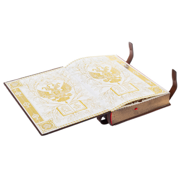 Уникальное издание в кожаном красивом переплете ручной работы, в подарочном коробе который открывается с верху, с тематическим золотым и блинтовым и цветным тиснением, уникальными цветными иллюстрациями, на мелованной бумаге, станет отличным подарком любителям данной тематики!