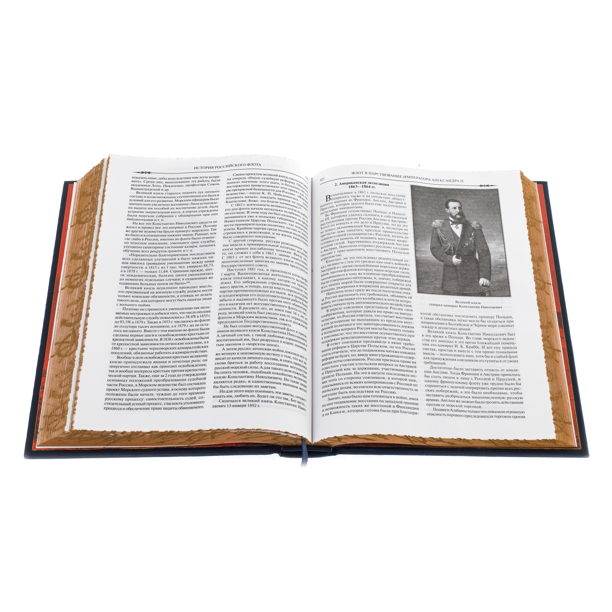 Книга "История российского флота" в кожаном переплёте — это не просто предмет, а символ великой державы, воплощение славы и мощи России, олицетворение мужества и героизма её защитников. Массивная обложка из натуральной кожи с рельефным узором и золотым тиснением, изображающим парусник, заставляет сердце учащённо биться в предвкушении погружения в эпоху великих побед на море. Этот парусник как символ надежды, устремлённый вперёд, словно переносит читателя в те времена, когда отважные флотоводцы прокладывали путь к российскому могуществу.