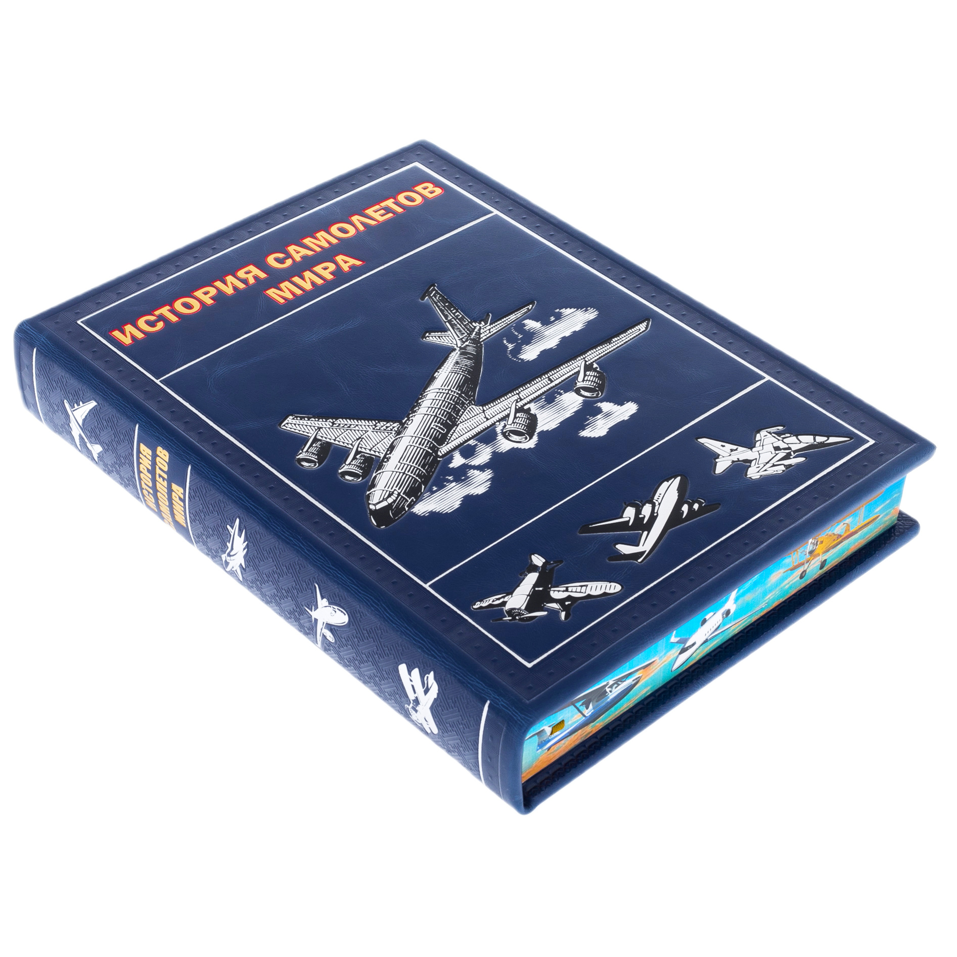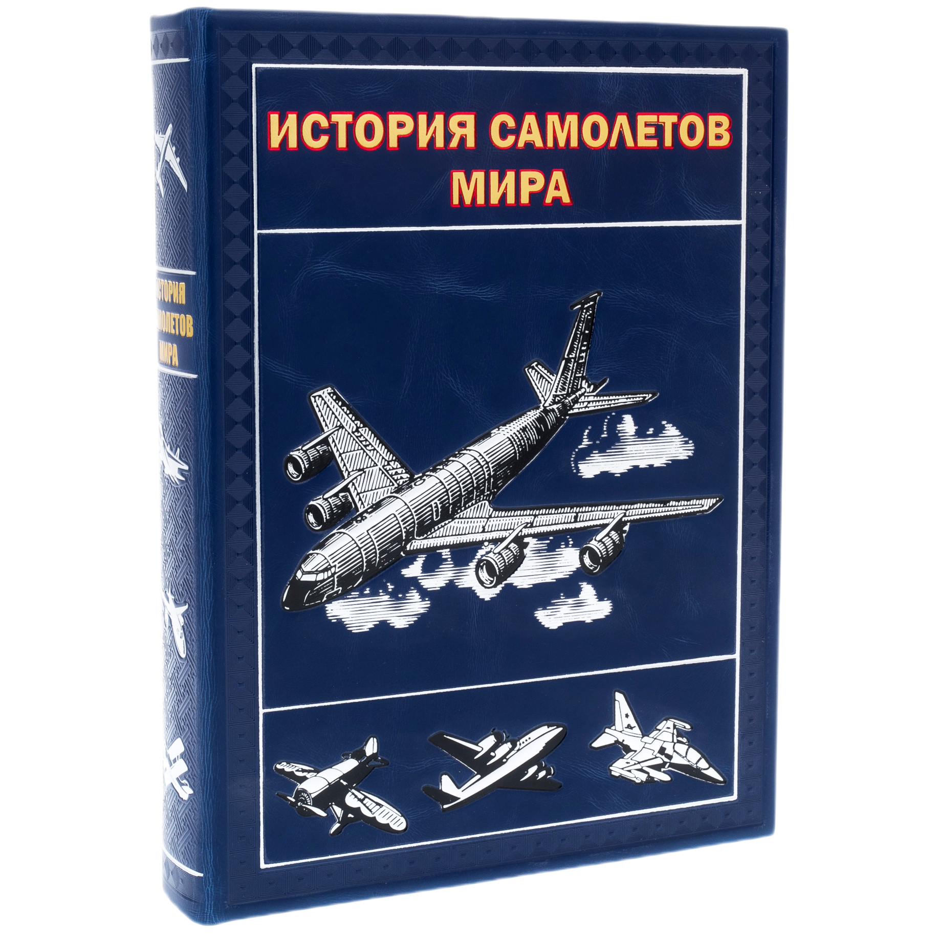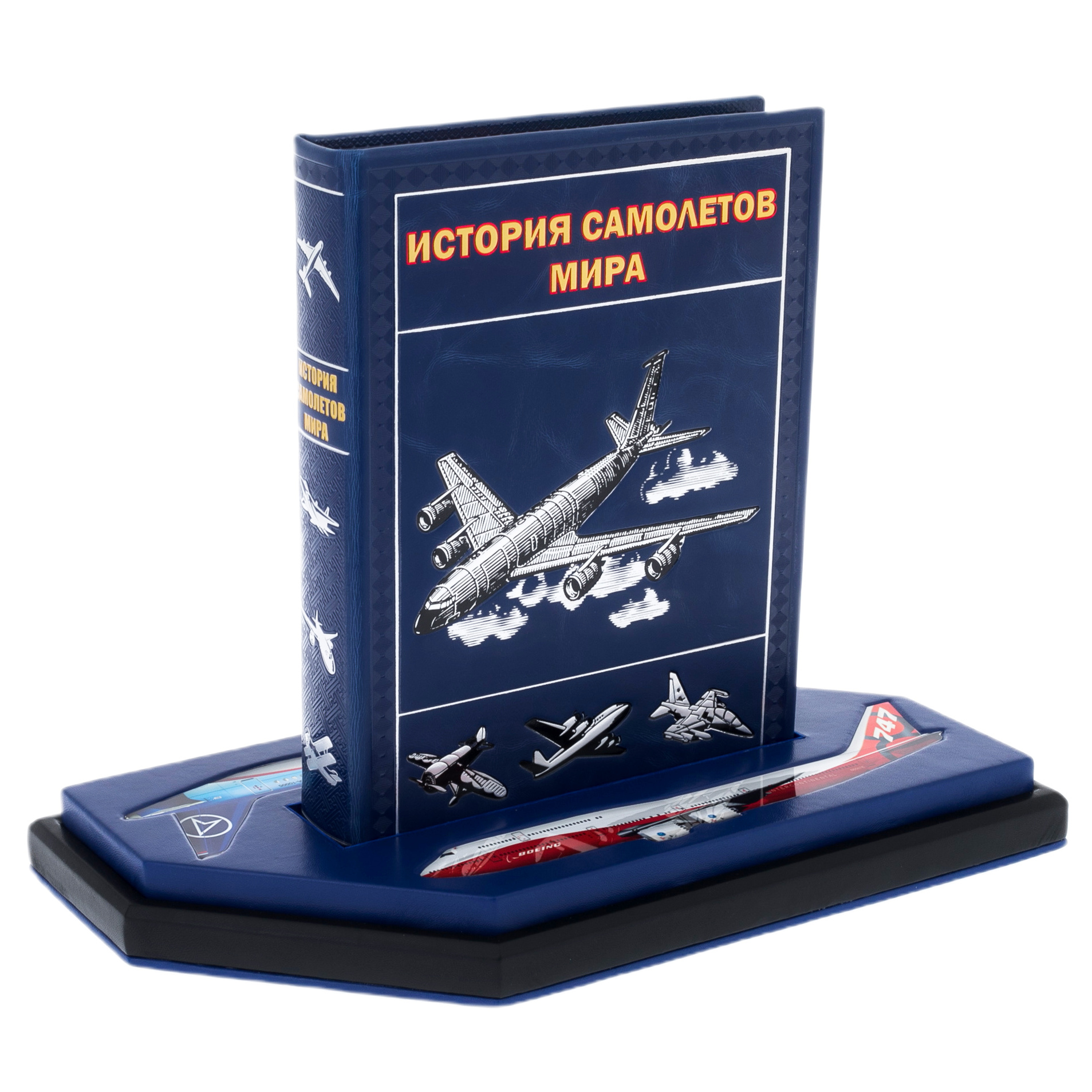 Книга в кожаном переплете "История самолетов мира " на подставке
