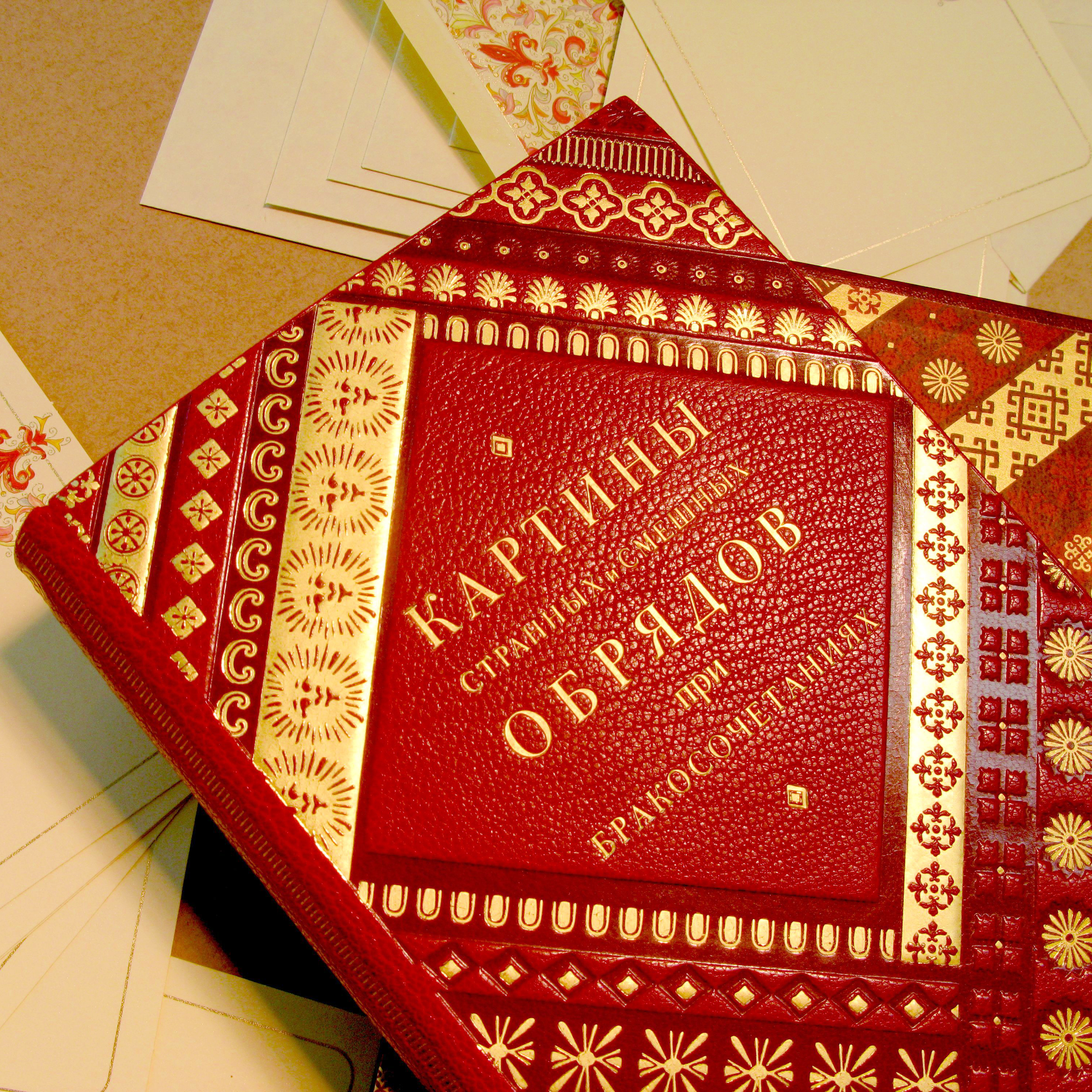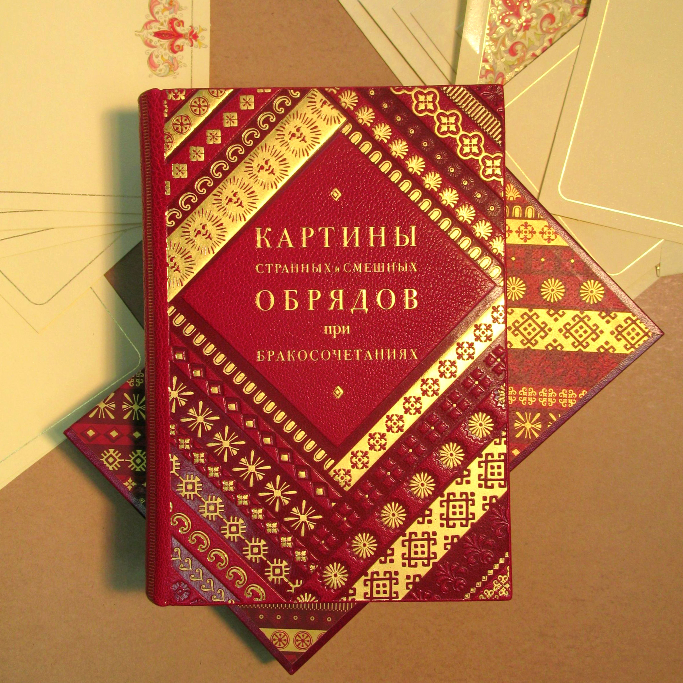 Книга в кожаном переплете "Картины странных и смешных обрядов при бракосочетаниях разных чужеземных и в России обитающих народов" Громов Г.И.