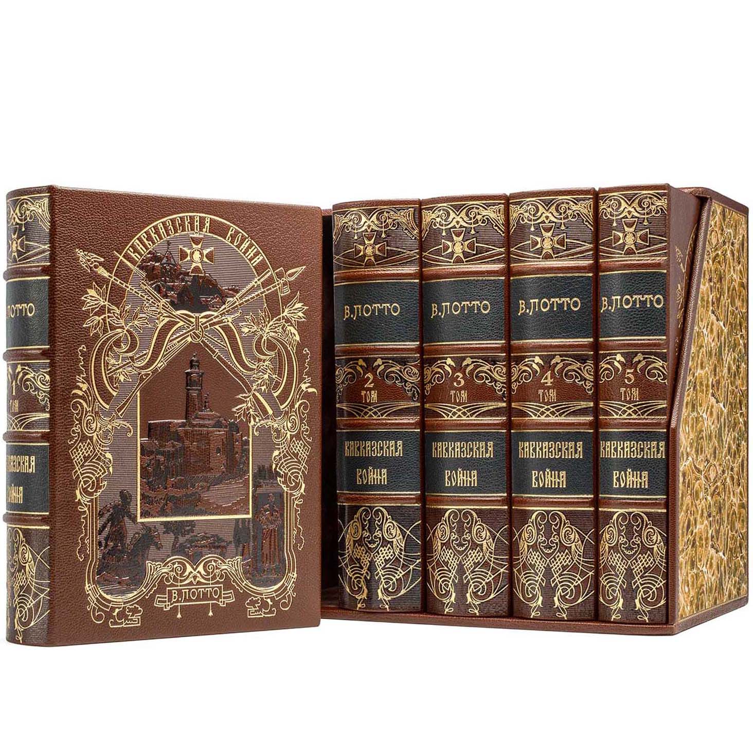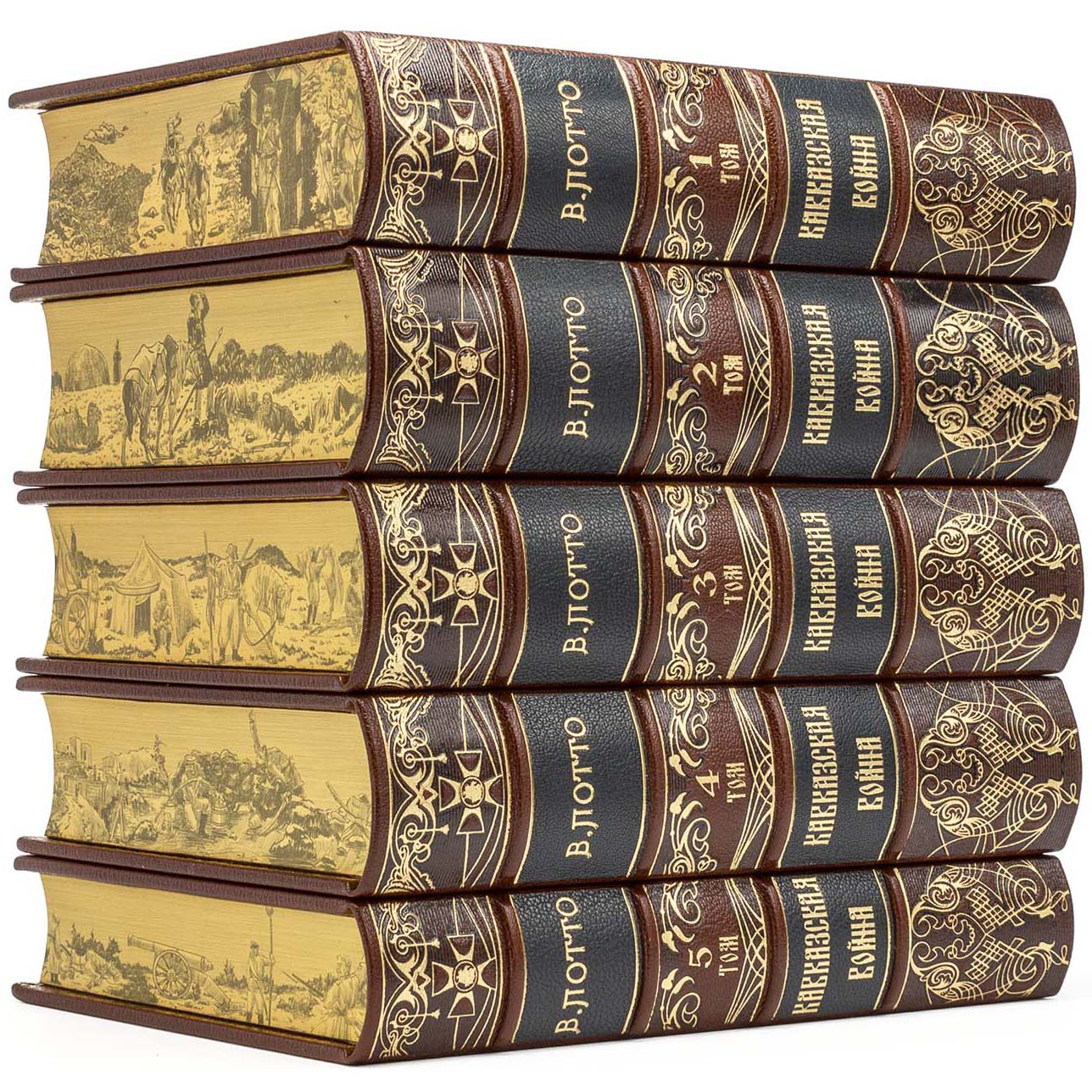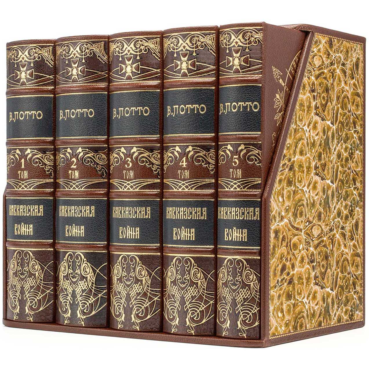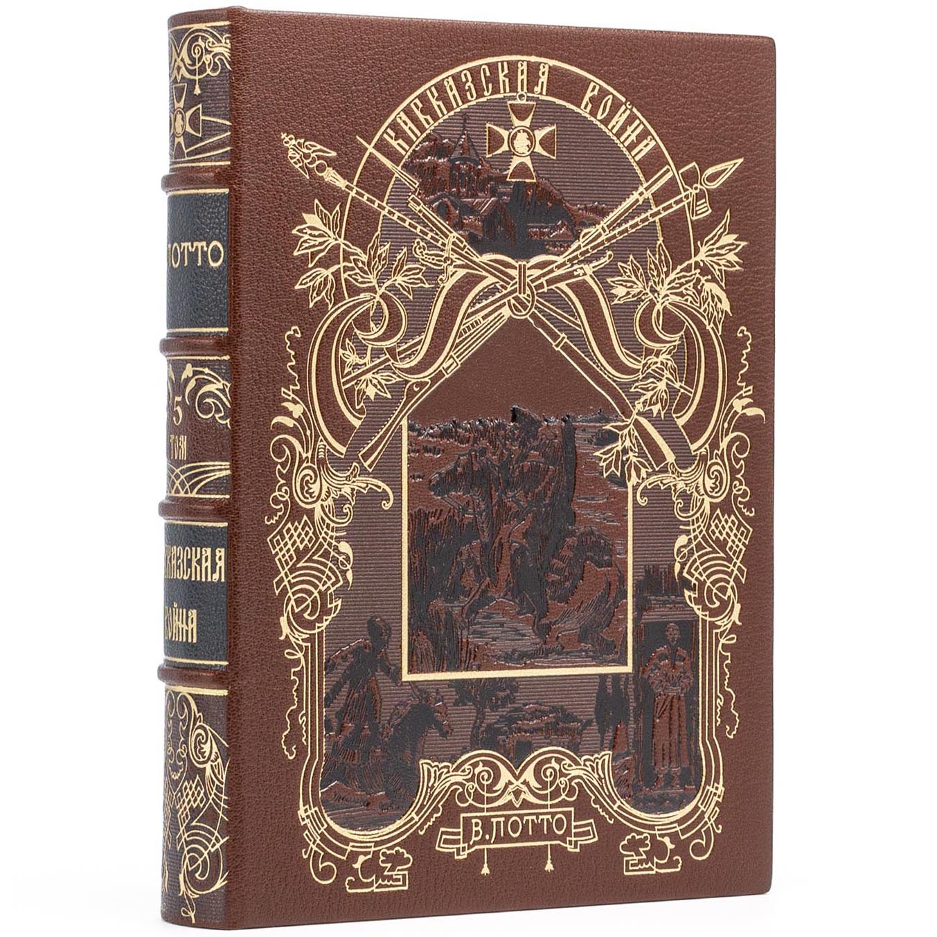 Книга в кожаном переплете "Кавказская война" Потто В.А., в 5-ти томах