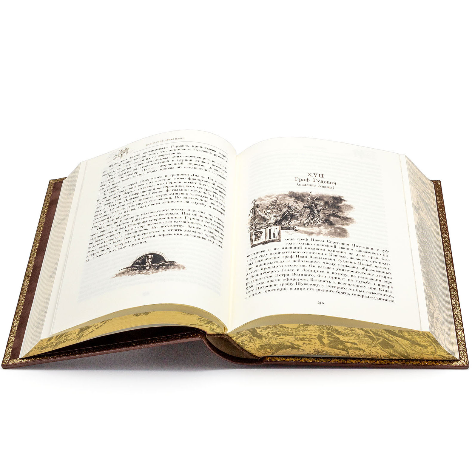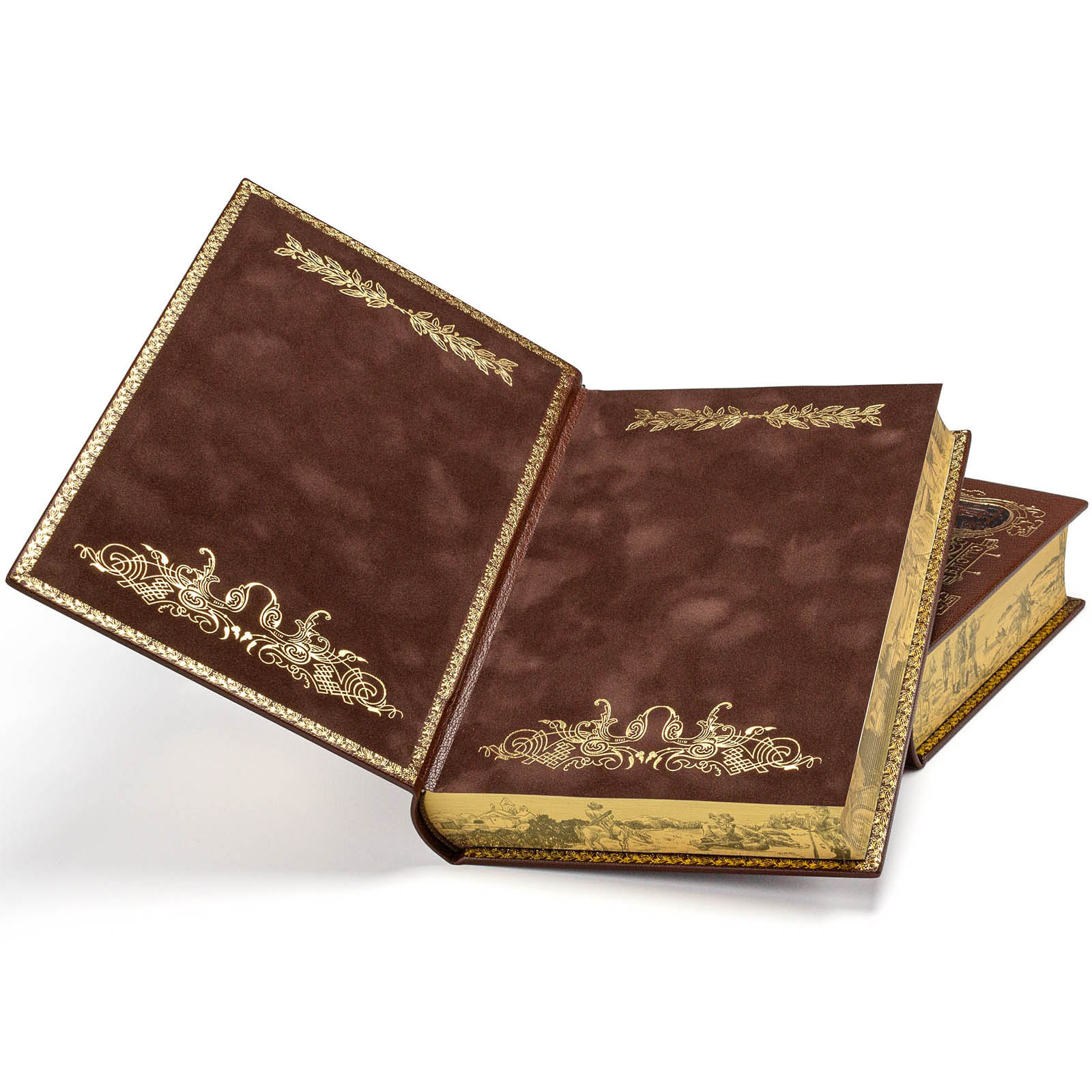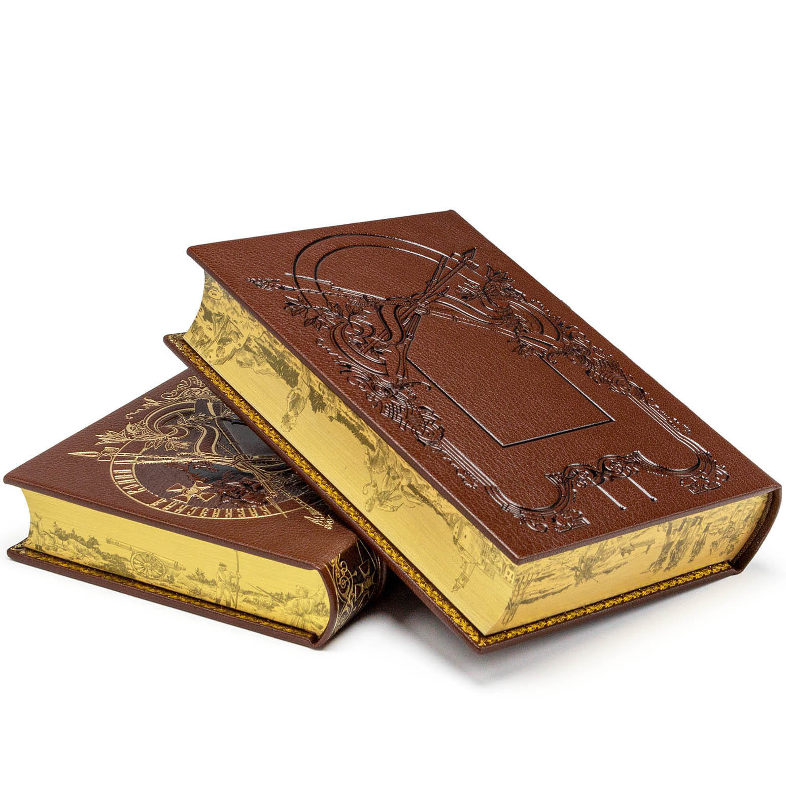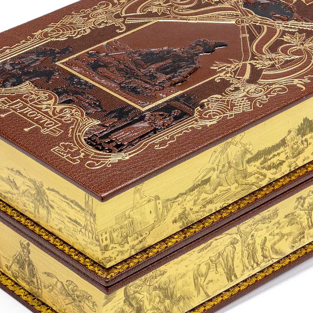 Оформление: Французский стиль кожаного переплета, уникальное тиснение по коже. Книги отпечатаны на итальянской дизайнерской бумаге "ARENA IVORY", вручную сшиты книжные блоки и отшлифованы. Страницы с тематическим оформлением и множеством интересных иллюстраций. Обрезы блока страниц в золотой тонировке, также украшены рисунками из сцен произведений. Уникальная ручная работа!.