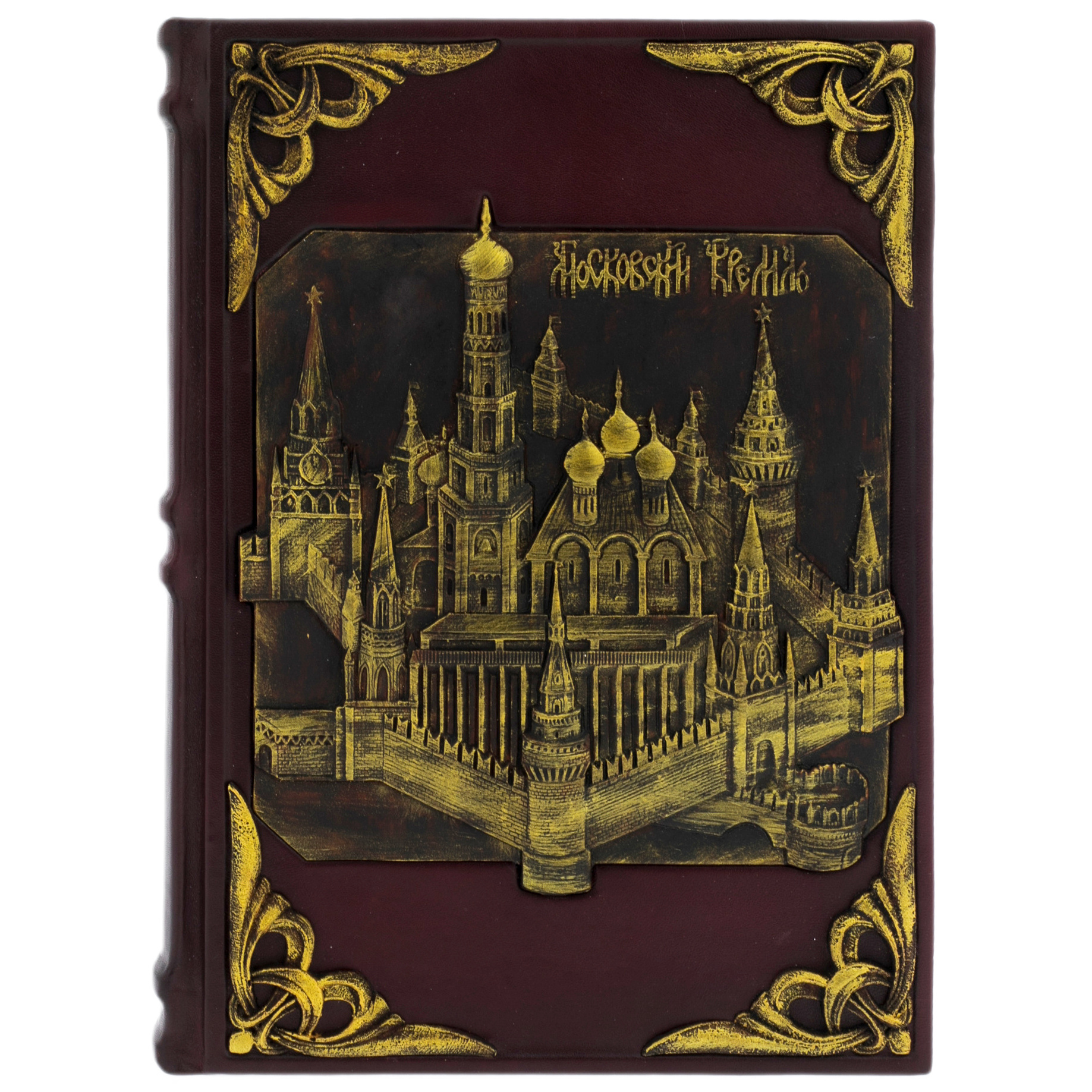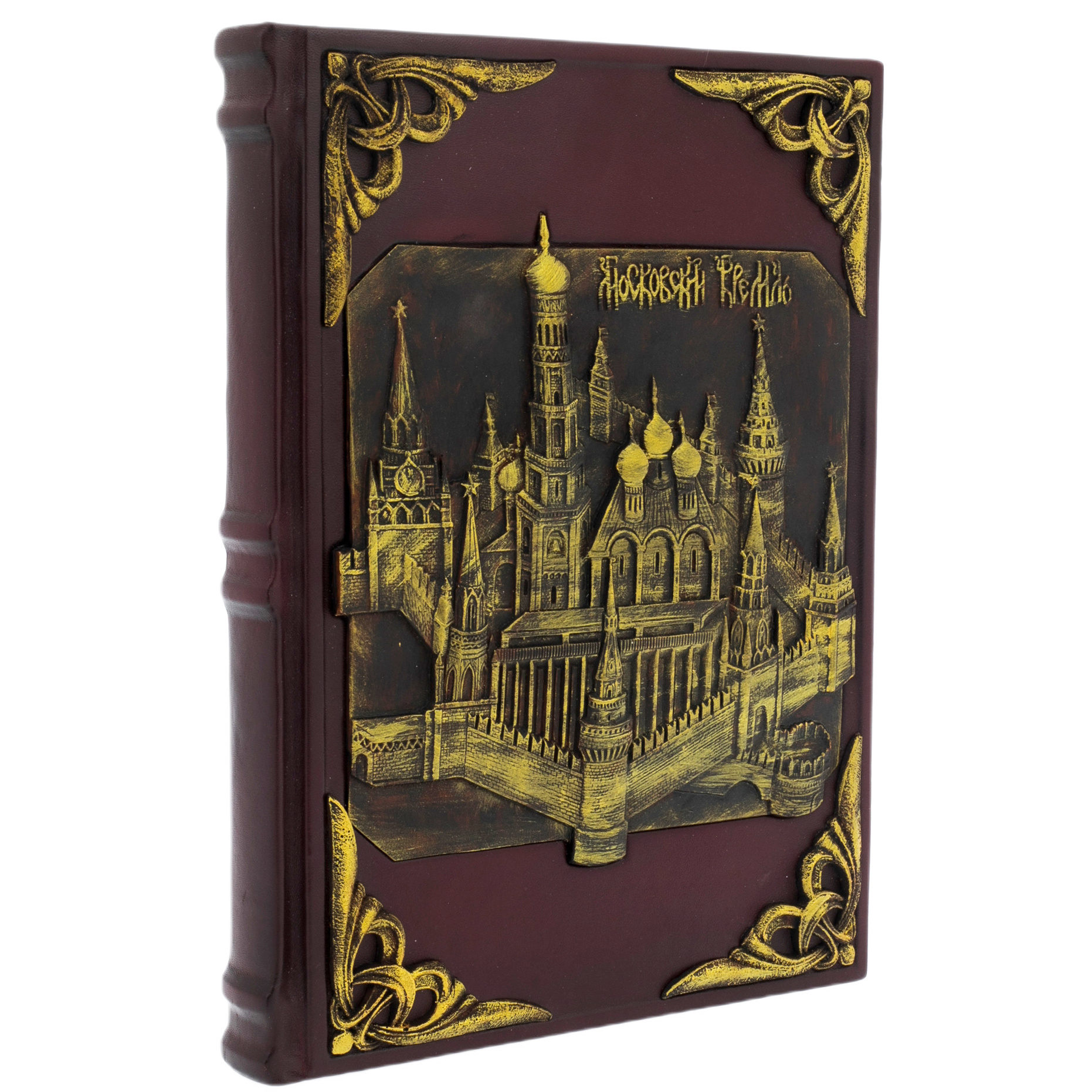 Книга «Московский Кремль» — не просто издание, а изысканный символ государственной мощи и культурного величия. Подарочный альбом, заключённый в роскошную кожаную обложку тёплого винного оттенка, украшен бронзовым барельефом с изображением главного архитектурного ансамбля страны. Объёмная панорама Кремля, выполненная вручную с тончайшей прорисовкой башен, соборов и стен, словно вырезана из старинной чеканки и покрыта патиной благородного золота. Углы книги декорированы рельефными элементами в стиле русского модерна — каждая деталь выполнена с филигранной точностью, подчёркивая статус предмета как музейного экспоната.