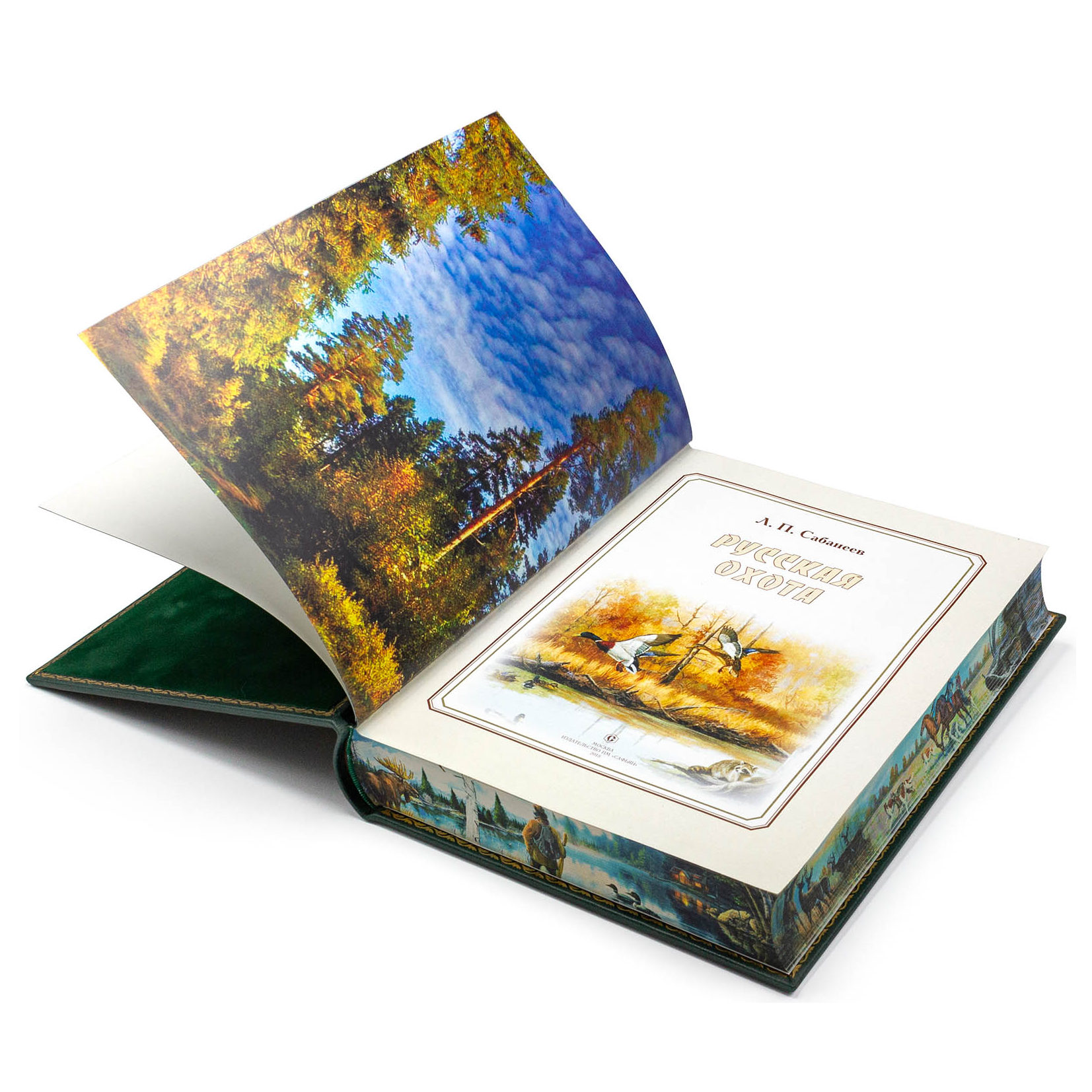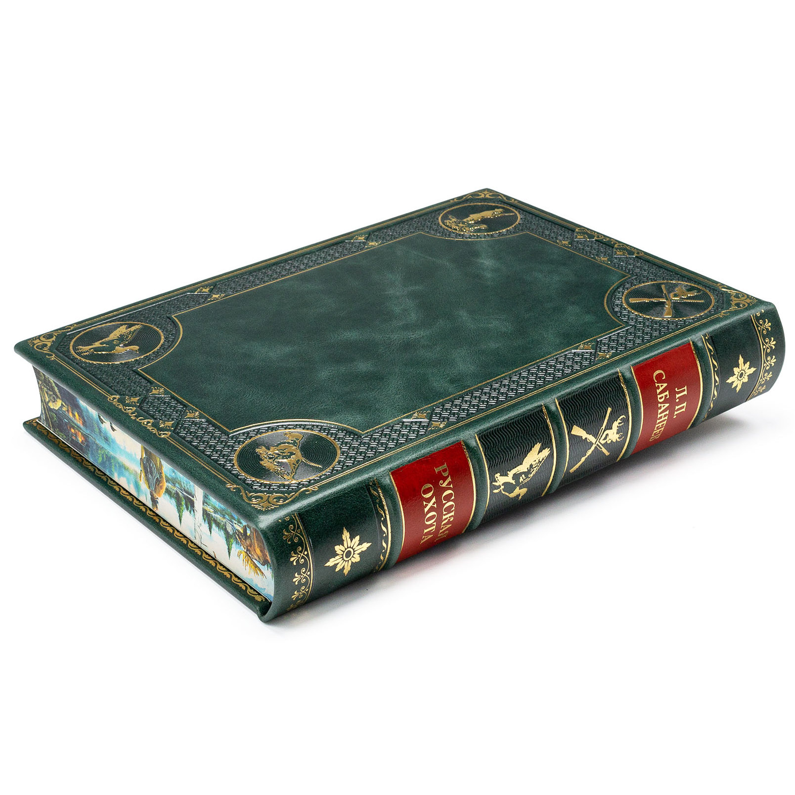 Книга в кожаном переплете "Русская охота" Сабанеев Л.П, в коробе