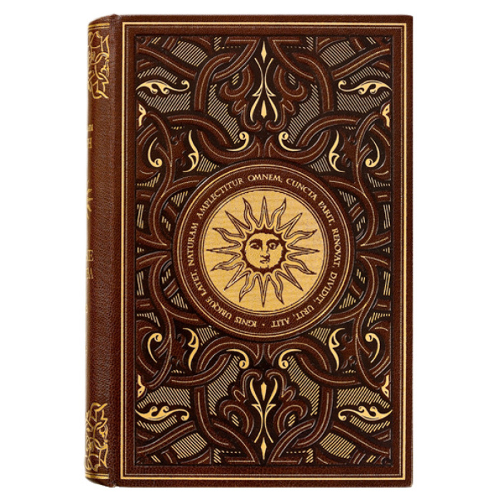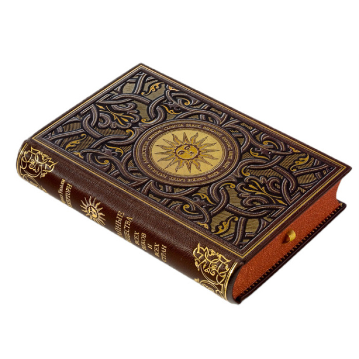 Исполнение:шелковые каптал и ляссе, форзацы из дизайнерской бумаги, переплет украшен тиснением золотой фольгой, а также блинтовым тиснением.
