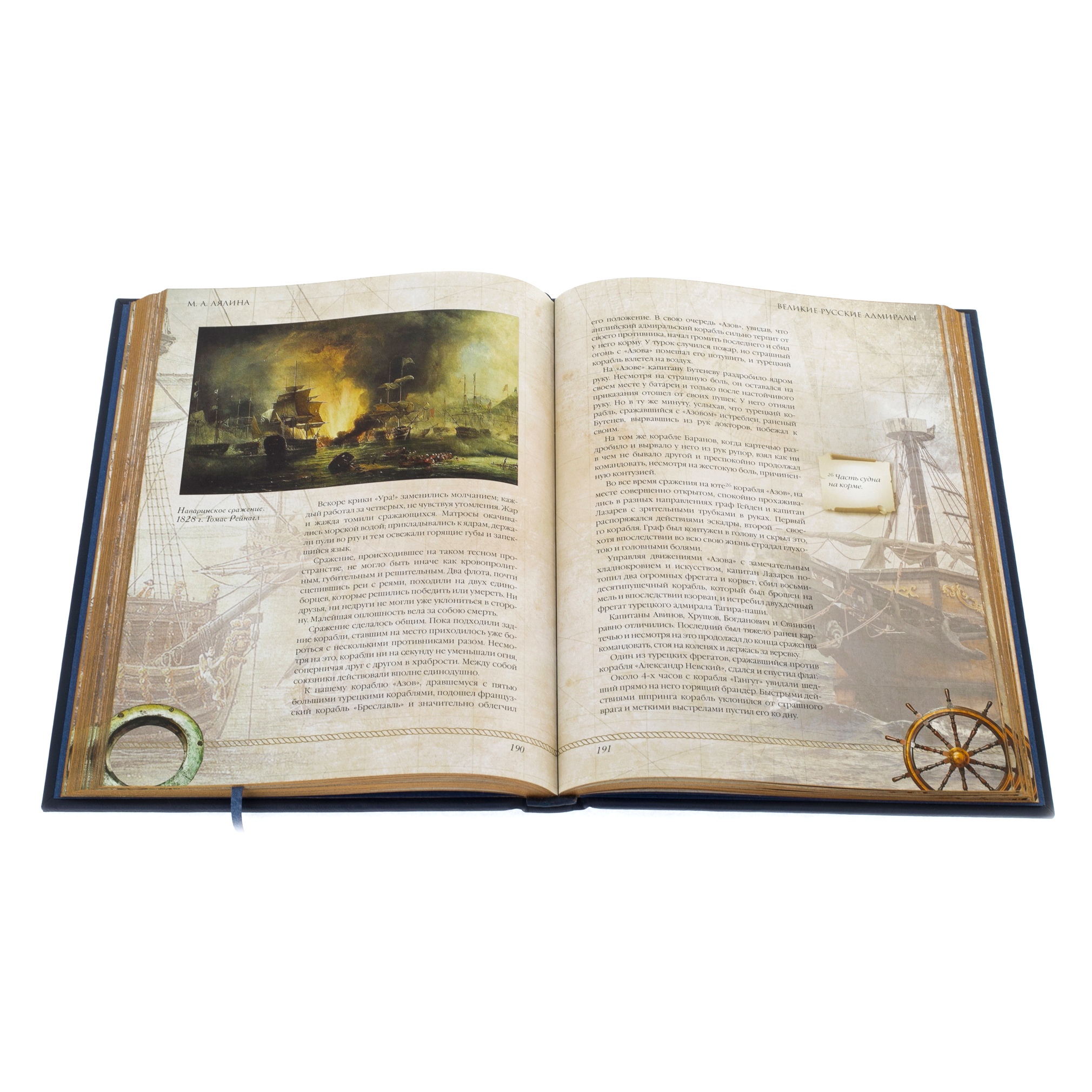 Книга в кожаном переплете "Великие русские адмиралы" синяя