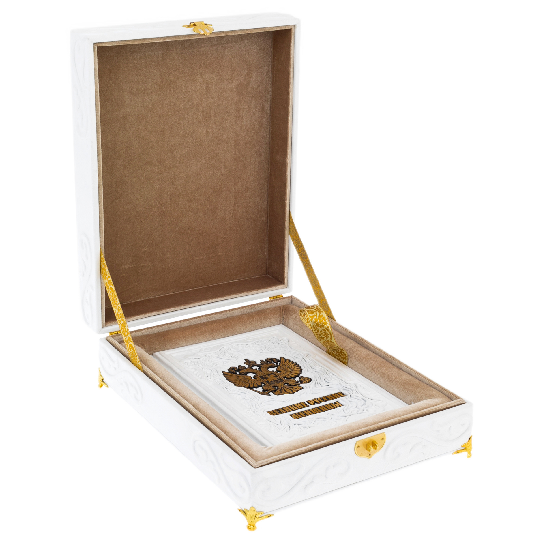Особенности оформления: классический европейский переплёт ручной работы. Форзац из дизайнерской бумаги Malmero с тиснением орнамента золотой фольгой. 6 бинтов на корешке, ручной обработки. Каптал золотой из натуральной кожи. Обрез блока — золото с торшонированием. Тиснение блинтовое, золотой и цветной фольгой. Ляссе.
