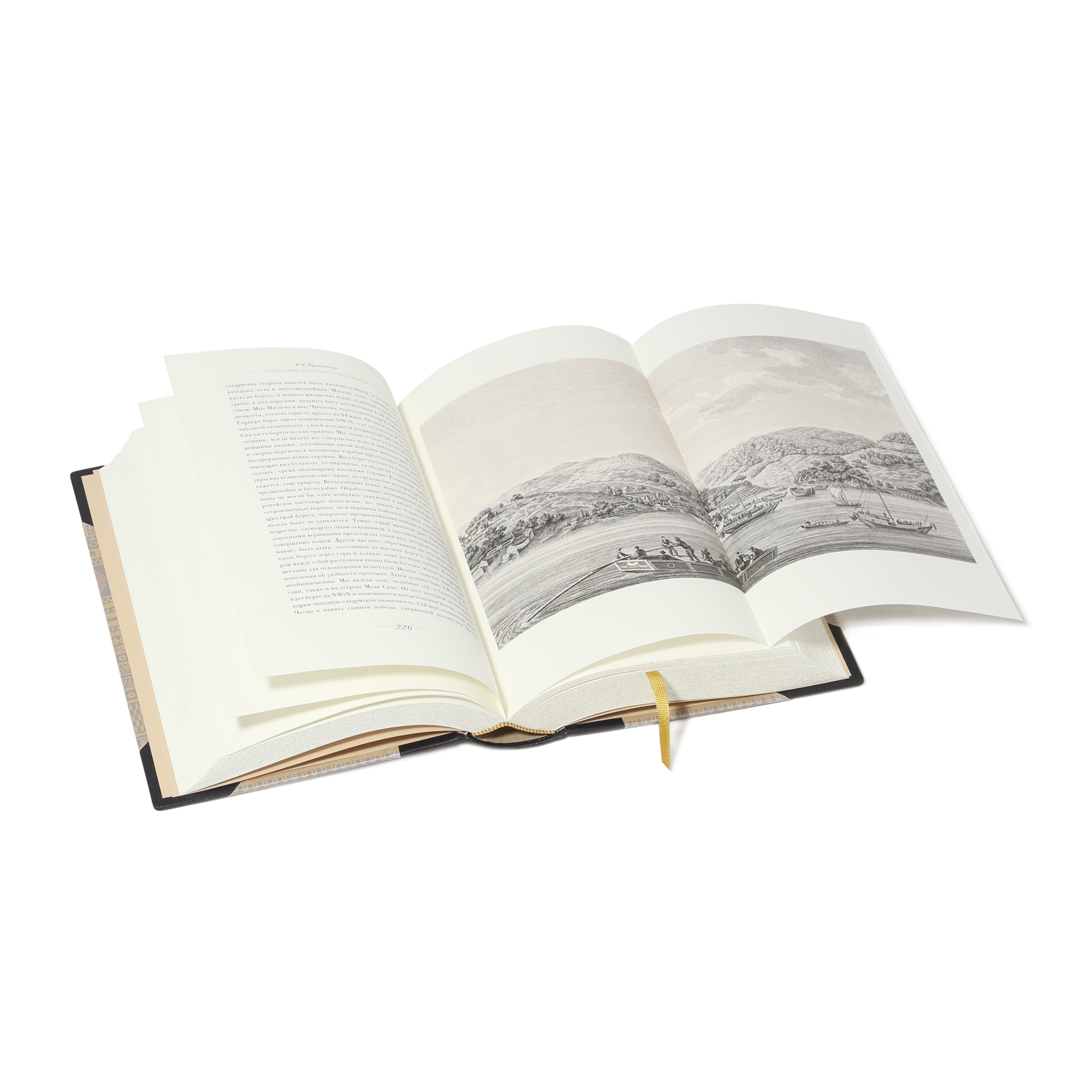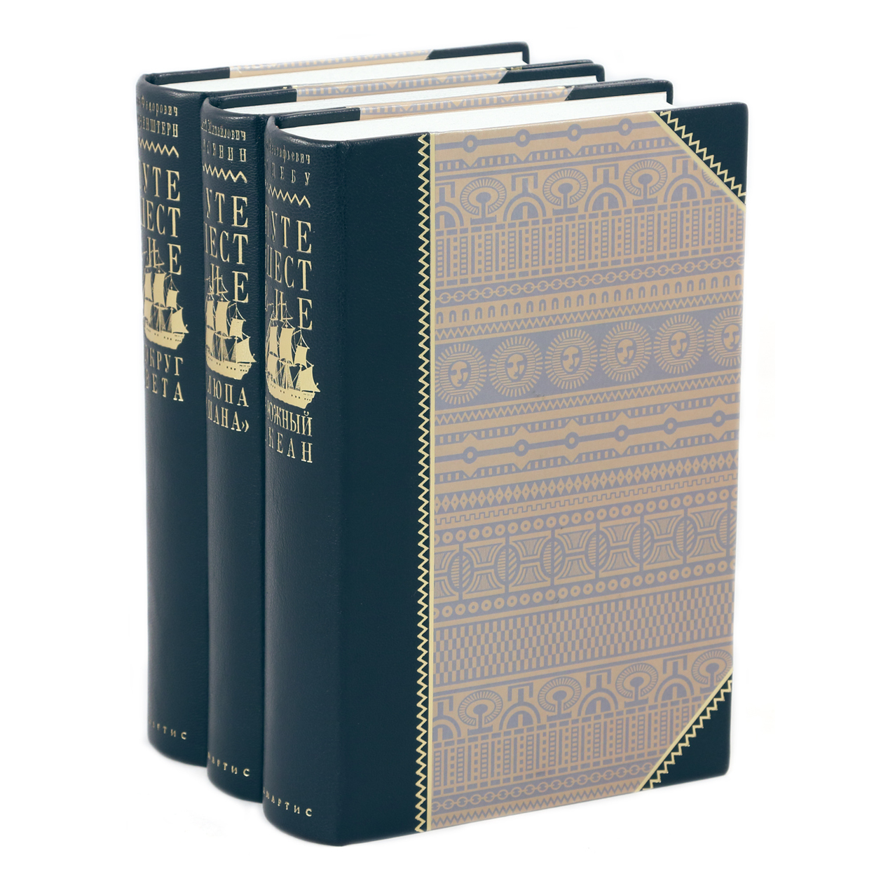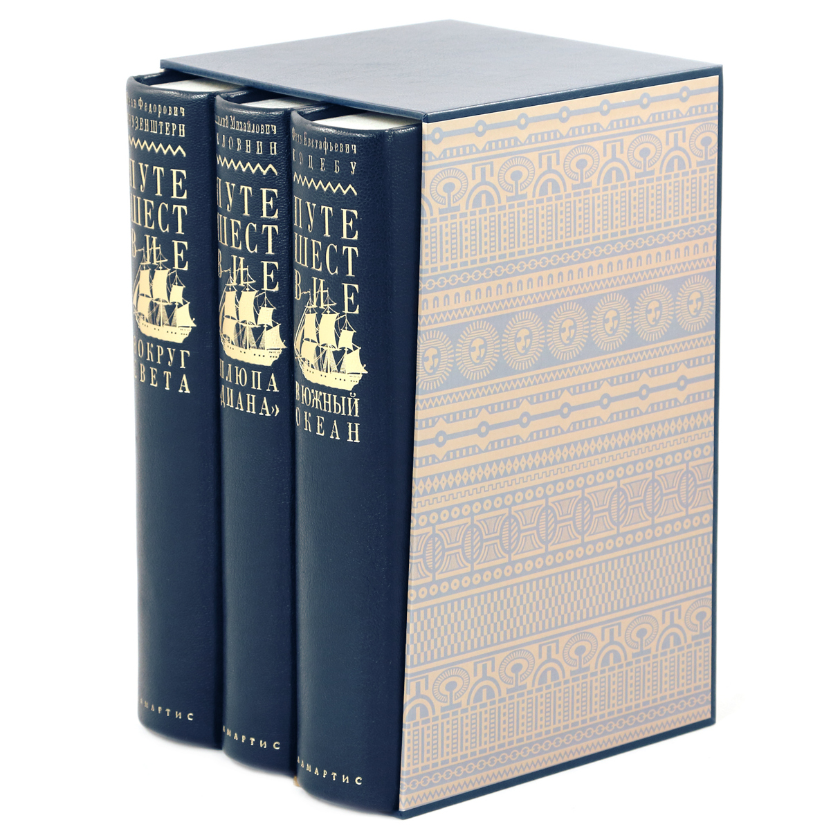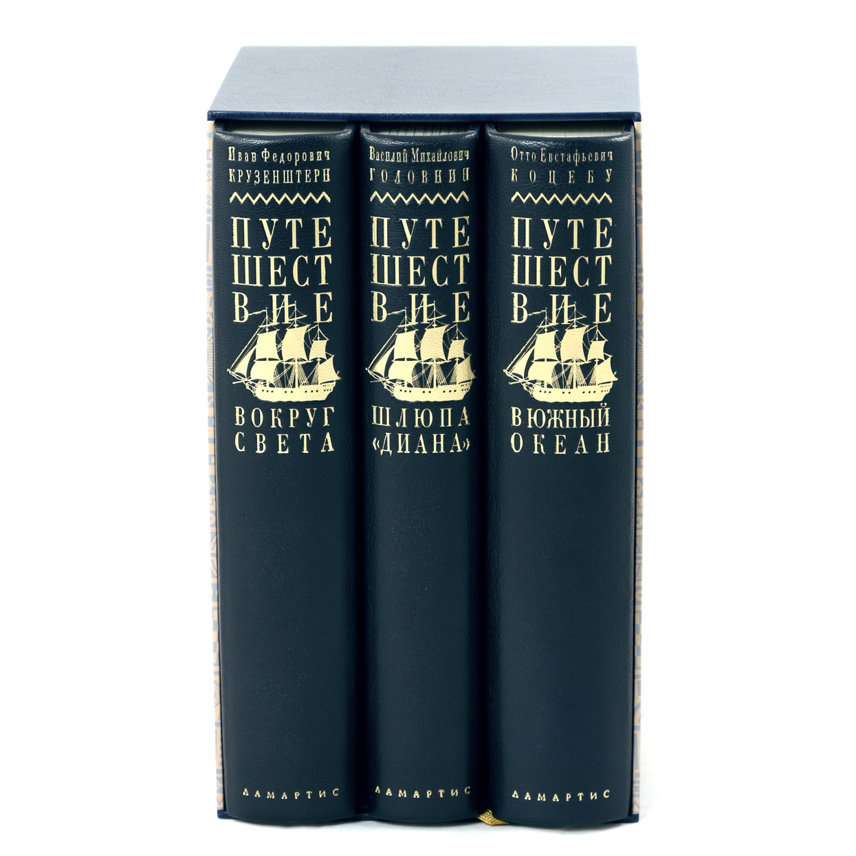 Книги в кожаном переплете "Альфа и омега: великие русские мореплаватели" Головнин, Крузенштерн, Коцебу, в 3 томах