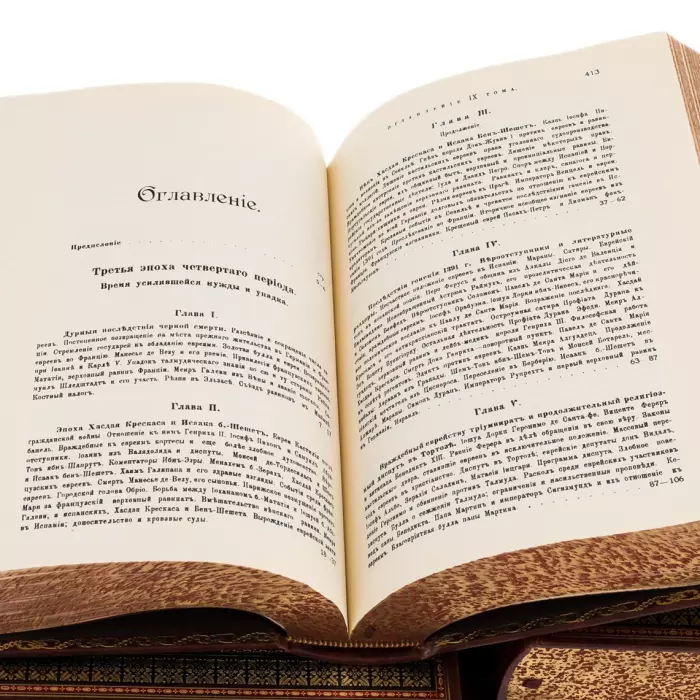 Книжное собрание «История евреев. От древнейших времён до настоящего» — фундаментальное репринтное издание, представляющее собой 12 томов, объединённых в 5 книг, посвящённых многовековой истории еврейского народа. Труд Генриха Греца, дополненный портретами выдающихся мыслителей и деятелей, раскрывает не только историческую хронику, но и духовное развитие, культурное наследие и философскую глубину эпох. Издание адресовано ценителям интеллектуальной литературы, коллекционерам и тем, для кого книга является символом статуса, знаний и уважения к традиции.
