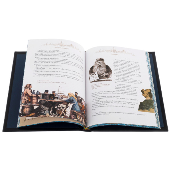 Иллюстрации, включенные в издание, заслуживают отдельного внимания. На страницах оживают редкие архивные изображения, литографии и акварели, переносящие читателя в сердце старинного города. Они не только дополняют текст, но и становятся самостоятельным произведением искусства, визуализируя сцены московской жизни — будь то ярмарка, кабак или знаменитые московские лавки. Каждая иллюстрация оживает на плотной качественной бумаге, которая дарит ощущение подлинного прикосновения к истории.