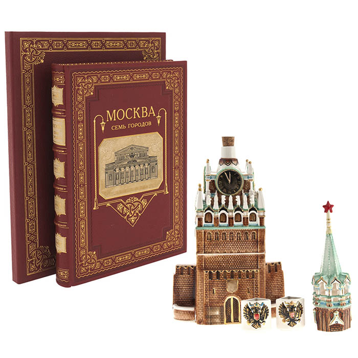 Подарочный набор "Москва. Кремль" — это истинное воплощение величия и культурного наследия Москвы, собранное в изысканной коллекции, которая включает в себя уникальное издание книги "Москва. Семь городов" и сувенирный штоф, выполненный в виде Спасской башни Кремля.
