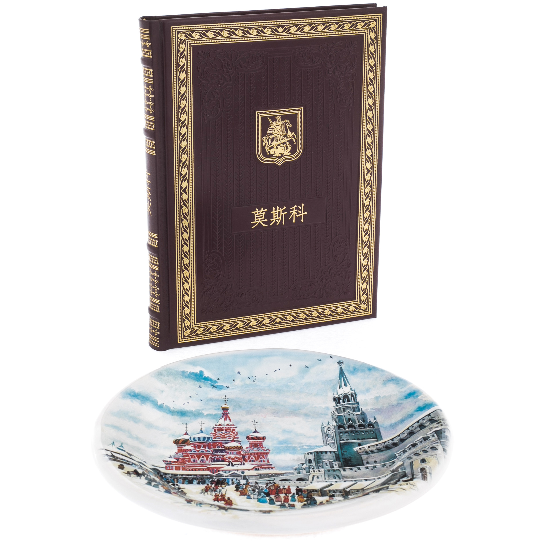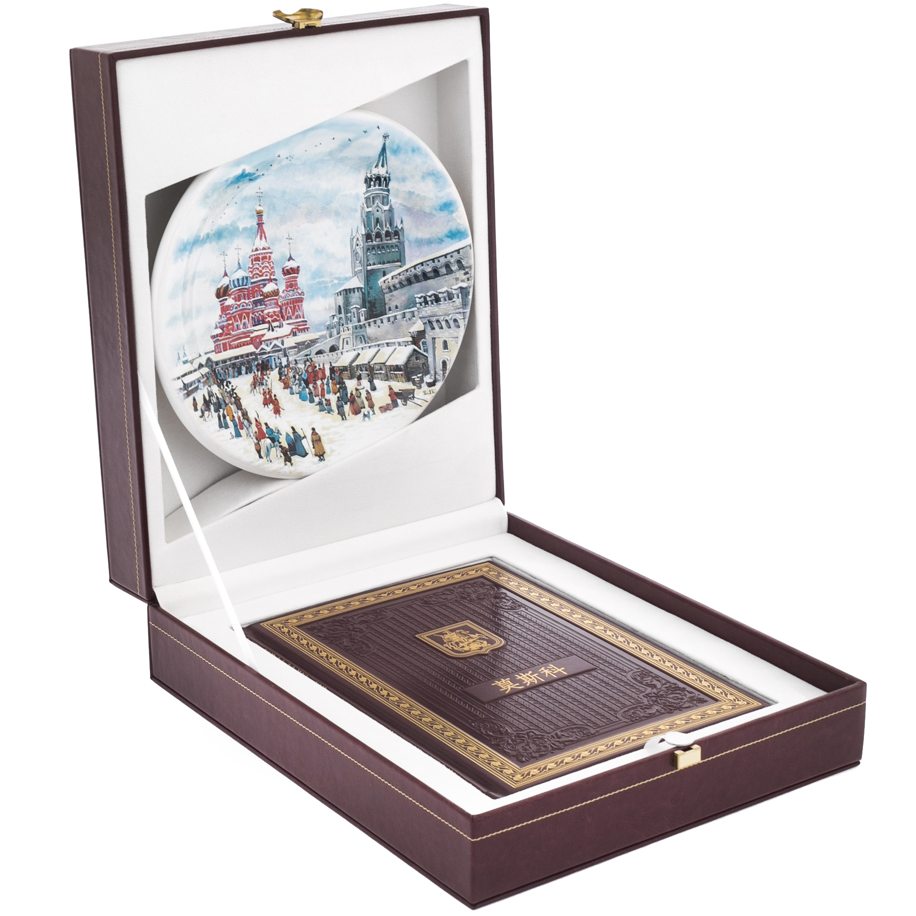 Подарочный набор с книгой и тарелкой "Москва" на китайском языке