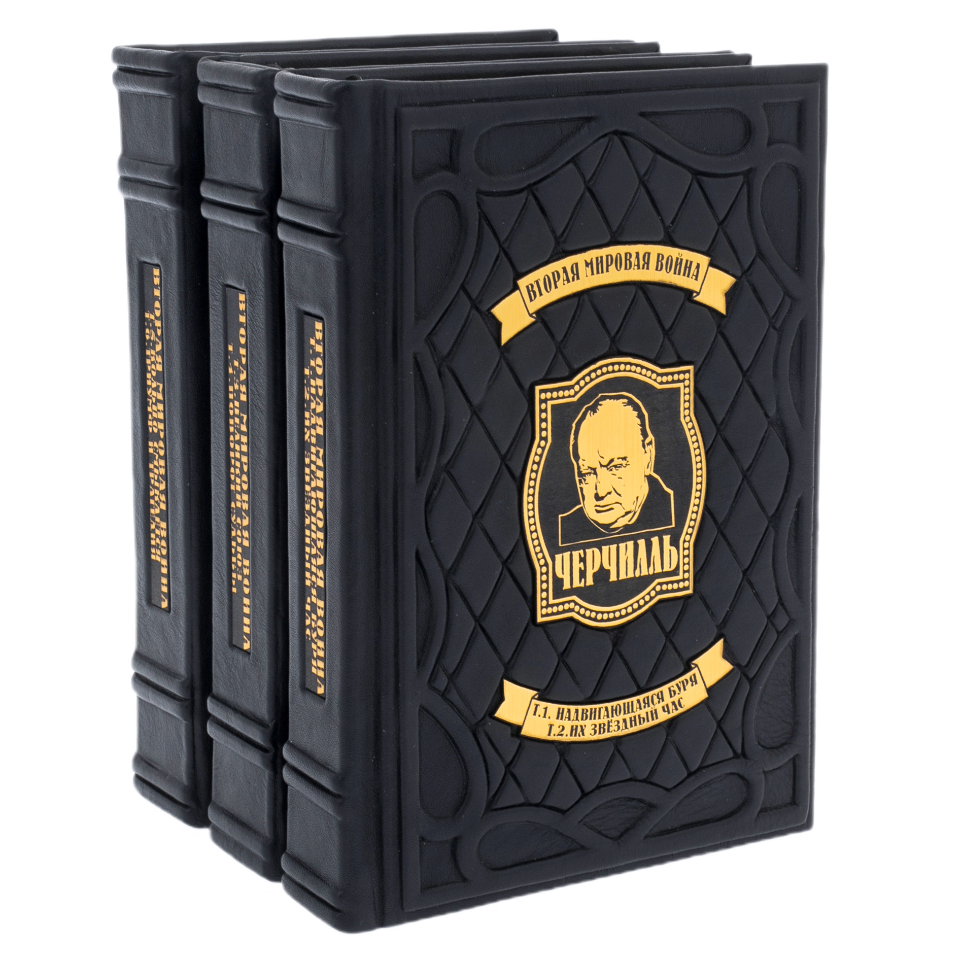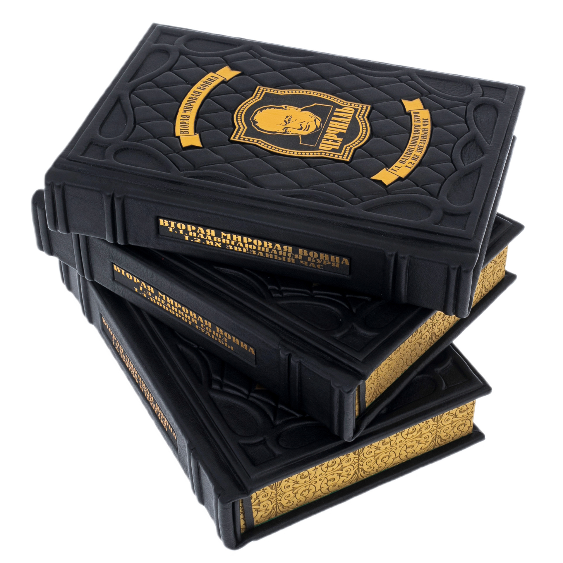 Подарочный комплект в кожанном переплете "Вторая Мировая Война. Уинстон Черчилль" в 3-х томах